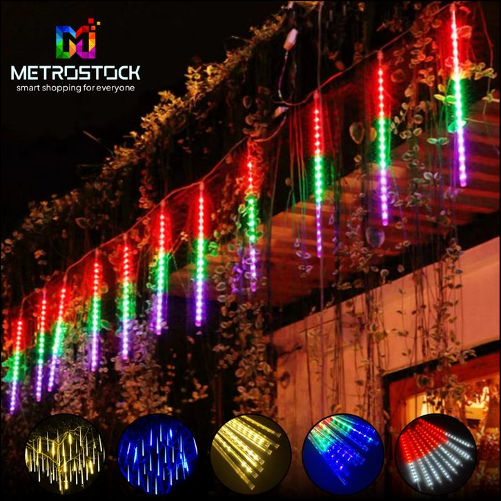 Lampu meteor shower lights efek LED RGB merah putih warm white waterproof cahaya bintang jatuh turun hias pohon rumah ag