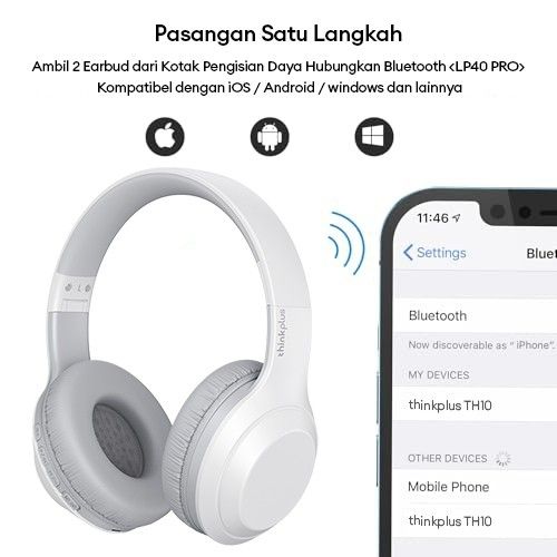 Lenovo Thinkplus TH10 Wireless Bluetooth Headset V5.0 Music Gaming Headphone Sweat Resistant White