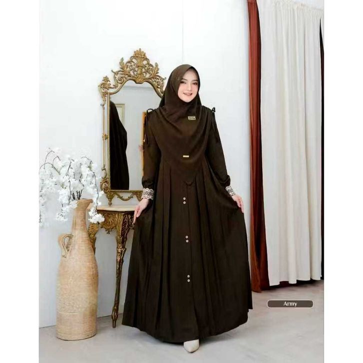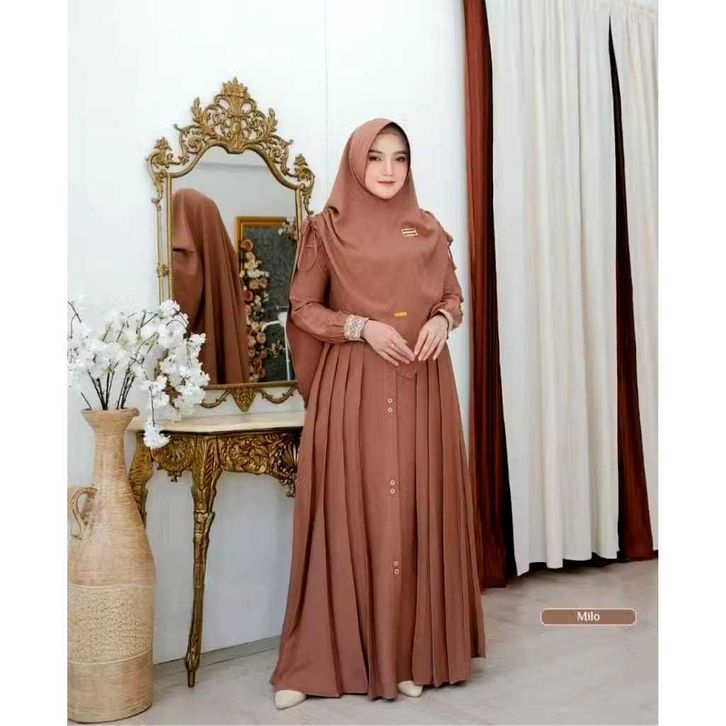 Promo PROMO GAMIS TERBARU KEKINIAN MAWA'DAH SYAR'I M L XL XXL SET HIJAB BAHAN CRINCLE AIRFLOW