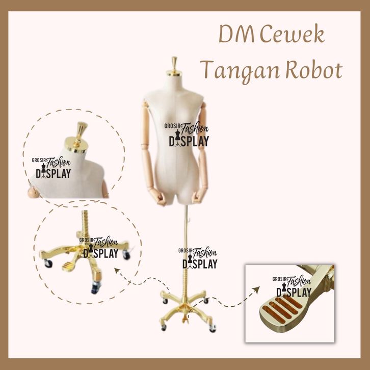 Patung Manekin Tangan Robot Tiang Roda DM Tangan Robot Manekin Setengah Badan-BH