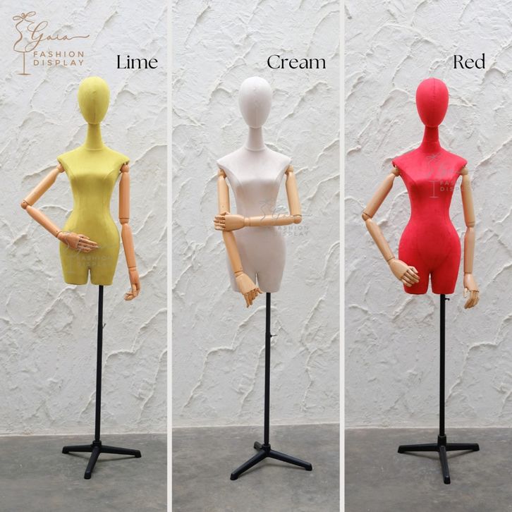 Manekin JEWRYN DM Bludru Collore Tangan Kayu Robot Patung Dm Tiang Hitam Tangan Robot Bludru Ada Kepala (BH)