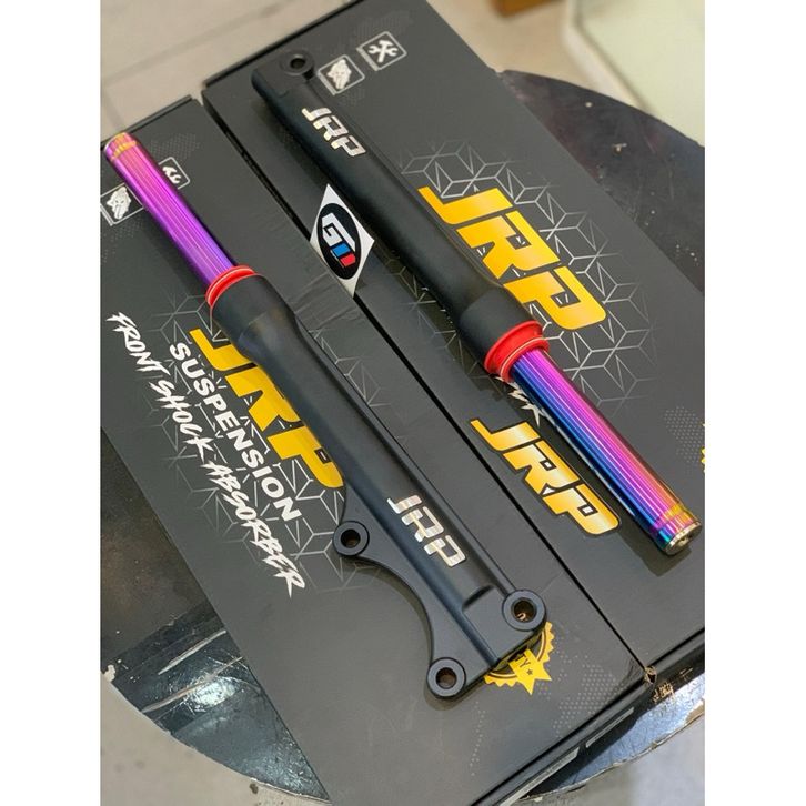 SHOCK DEPAN + TABUNG JRP UNTUK MIO J/ MIO SPORTY / BEAT / VARIO / SCOOPY / SHOCK AS RAINBOW GOLD BLUE / PIPE DEPAN