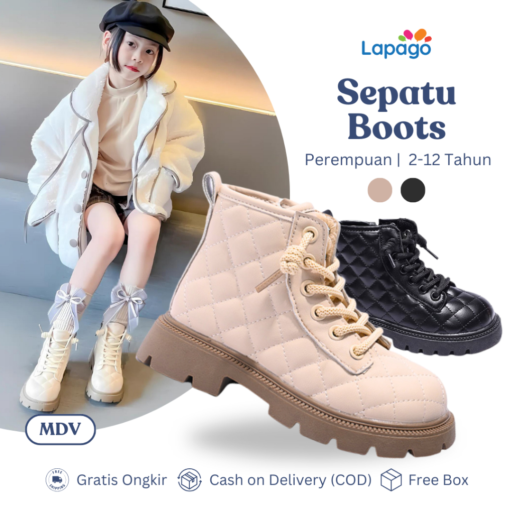 LAPAGO FREE BOX Sepatu Boots Anak Perempuan Casual Elegant Usia 2 - 12 Tahun Type MDV