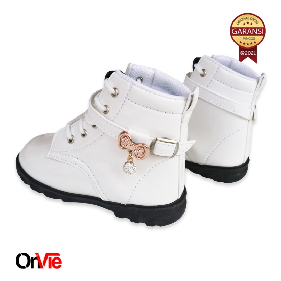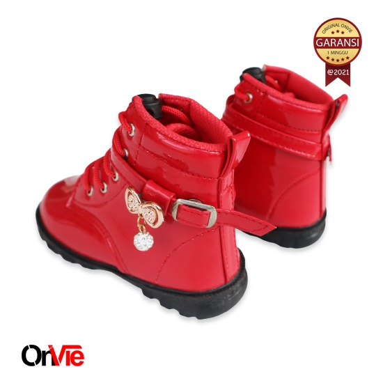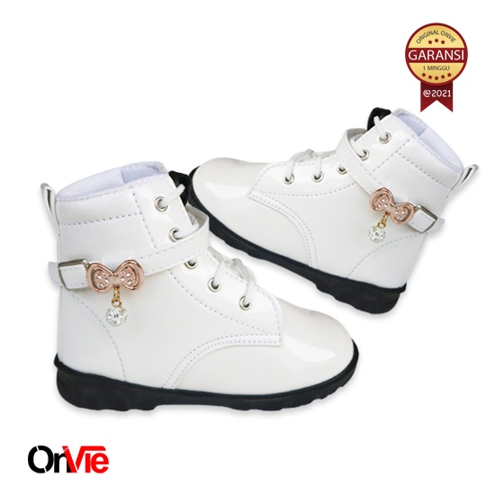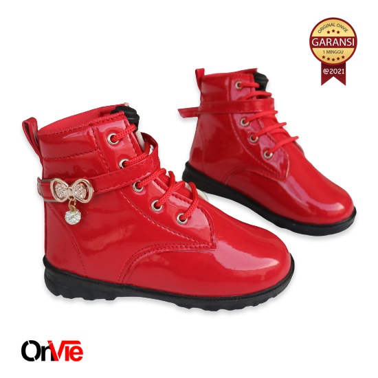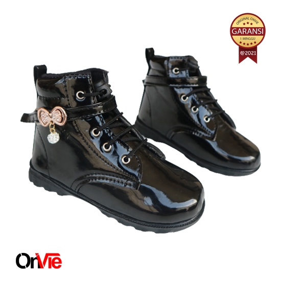 Sepatu Boots Anak Perempuan Glossy Motif Pita Mutiara | Sepatu Pesta Formal 22-35 Onvie