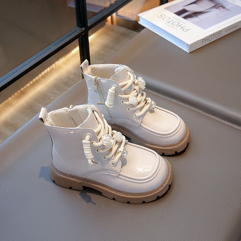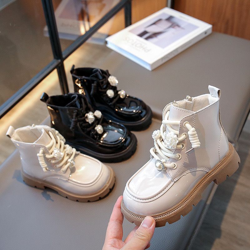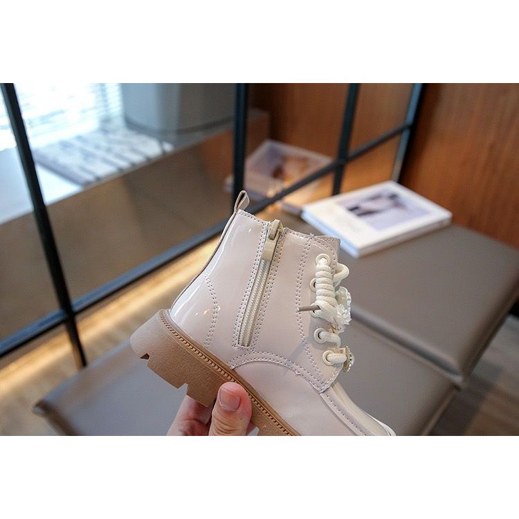 (Loli-Jkt) Sp- Nur Sepatu Boots Anak Luar Glossy Dalam Bludru Tali Resleting Samping Size 26-36