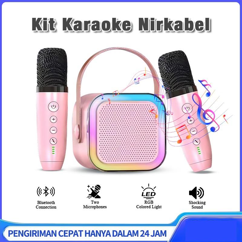 Speaker Bluetooth Karaoke Wireless 2 Microphone Set Salon Portable 3D Stereo Mini Full Bass