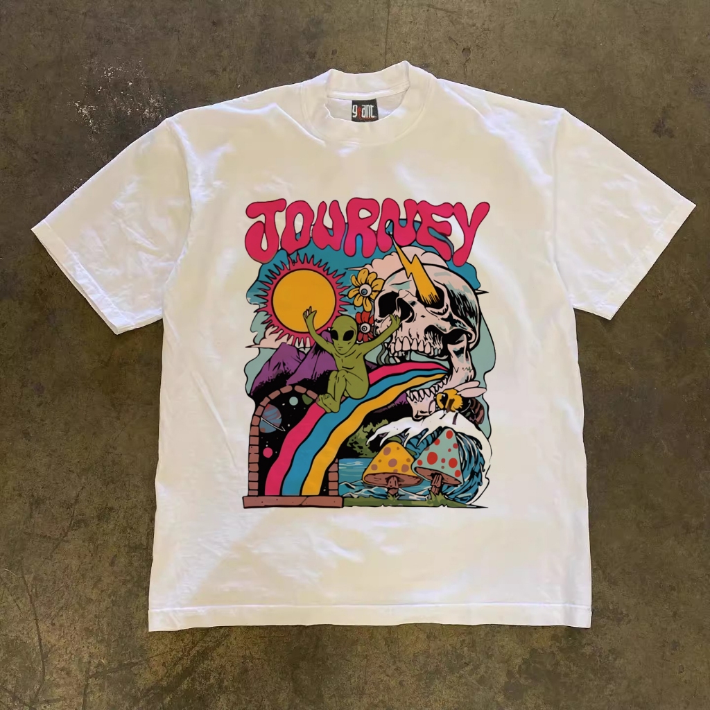 baju skena JJ.STORE JOURNEY Korea Style T-shirt Oversize | Kaos Wanita Putih | Kaos pria dan wanita