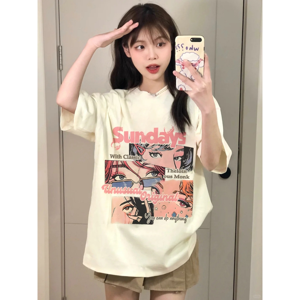 baju skena TGNS. 100% cotton kaos SUNDAYS Korean style t shirt kaos oversize wanita baju bigsize lengan pendek retro Vin