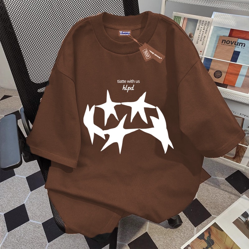 baju skena Gaya Amerika hlpd Bintang pencetakan baju atasan wanita terbaru kaos pria oversize couple t shirt vintage