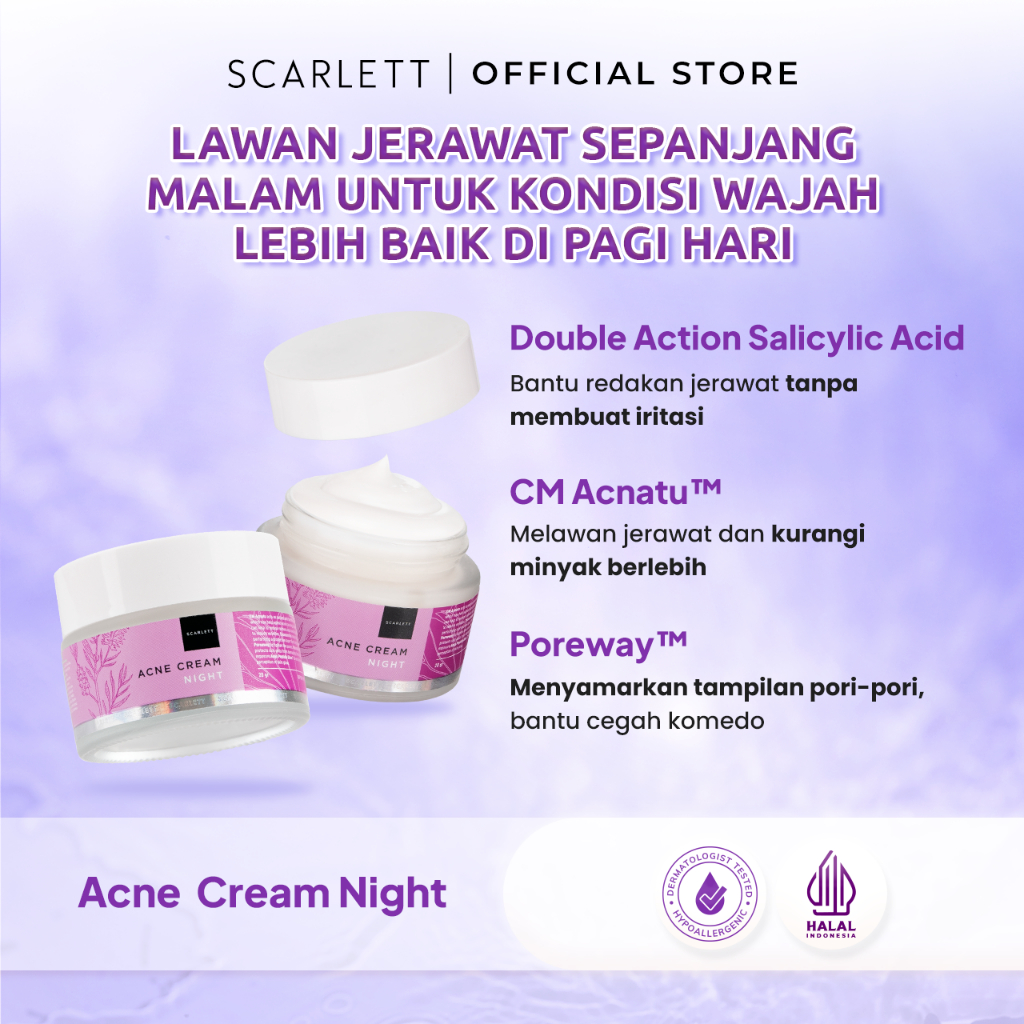 Scarlett Whitening Acne Night Cream - Krim Malam Penghilang & Perawatan Jerawat Ampuh Atasi Hingga Bekasnya