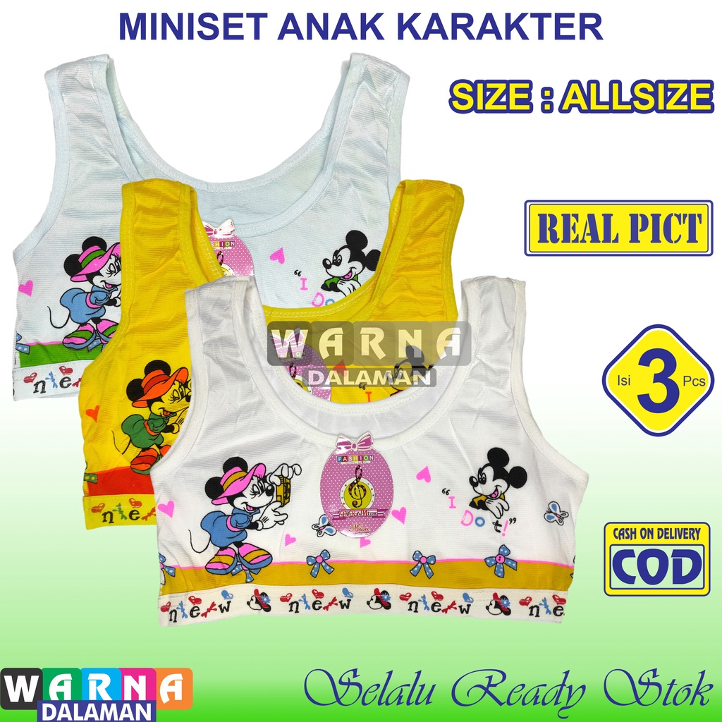 3 Pcs MINISET Anak SD SMP Bra Remaja ABG Gadis Mini Set Motif Gambar Multiwarna | WARNA DALAMAN