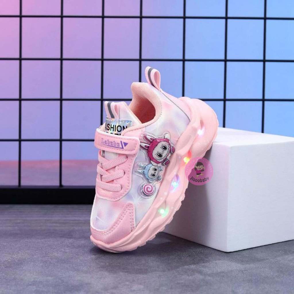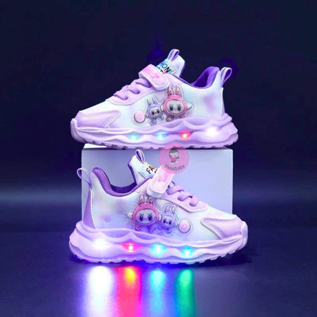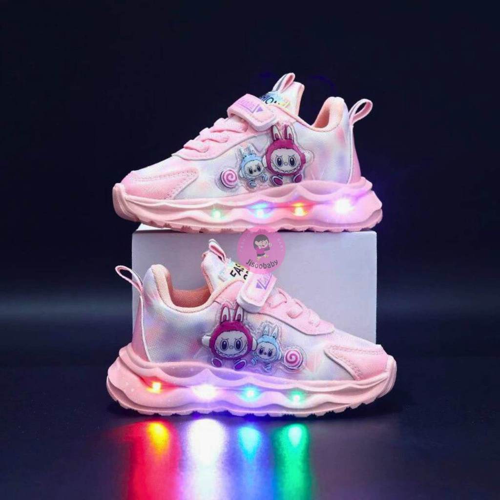 PROMO 6.6 JISOOBABY BB-48 Sepatu Sneakers Anak Perempuan LED Menyala sepatu el Lucu usia 6 bulan - 5 tahun LABUBU LOLIPO