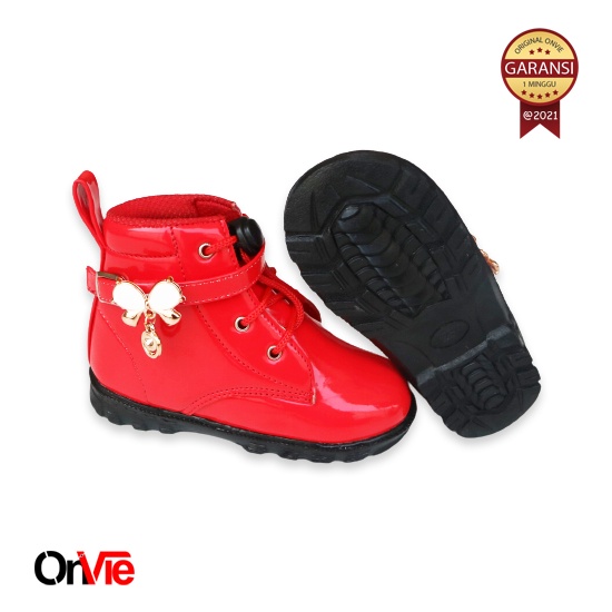 Sepatu Boots Anak Perempuan Glossy Manik Kupu-Kupu Kecil | Sepatu Boots Anak Onvie