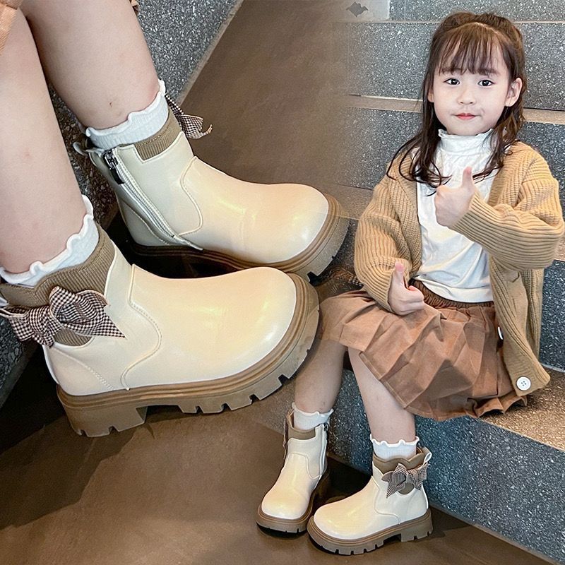 LychieeKids L041 Sepatu Boot Anak perempuan fashion kekinian motif Pita polos