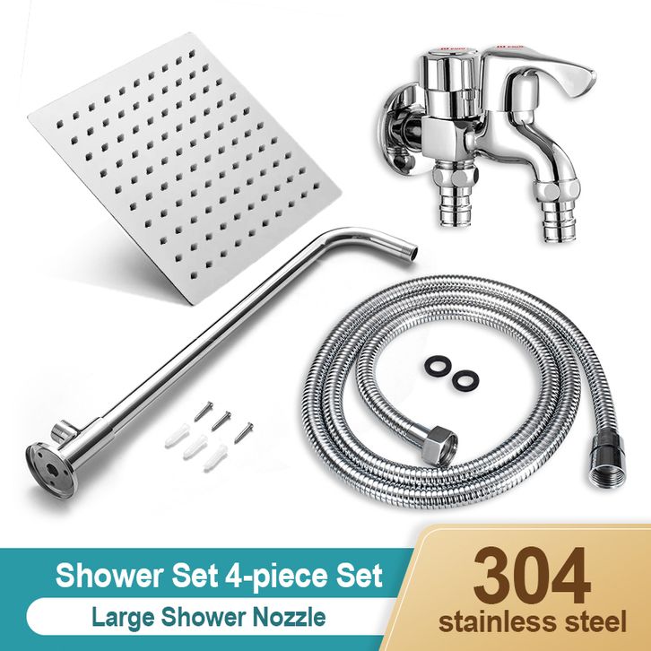 Paket Shower Head Shower Kamar Mandi Set Kran Cabang Shower 304 Stainless Steel Persegi 8" Dengan Kran Cabang 1/2 Inch