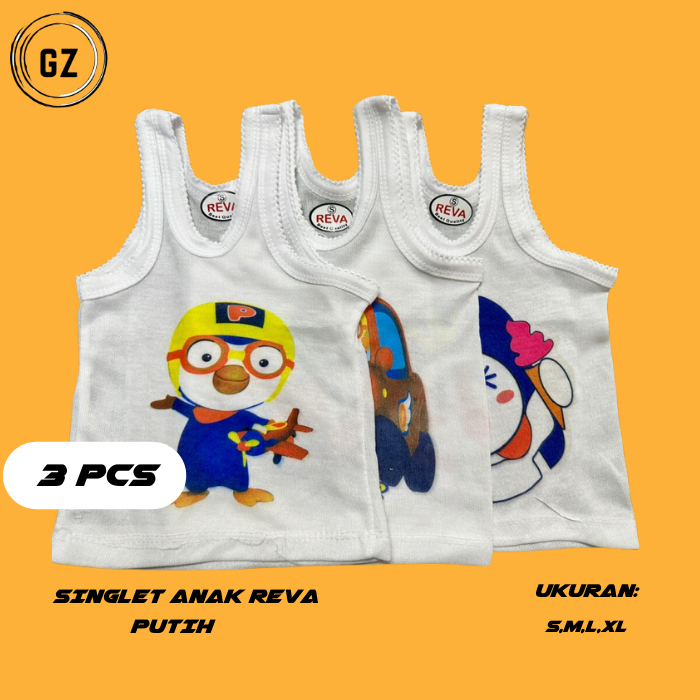 3pcs - Kaos Dalam Bayi & Anak 1-5 Tahun S-M-L-XL Singlet Warna Putih SABLON