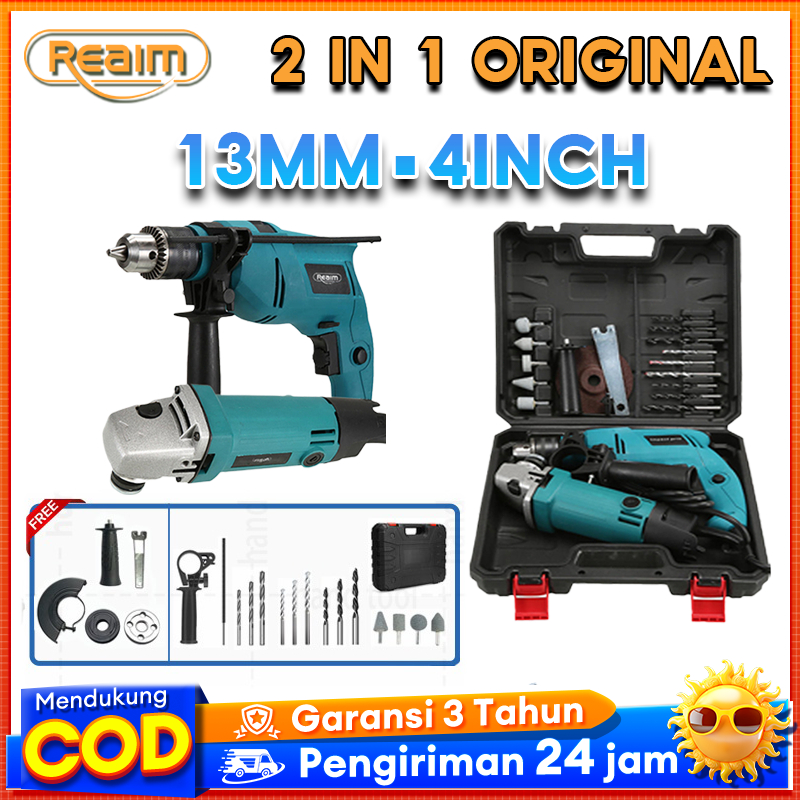 Reaim Mesin Gerinda Tangan dan Mesin Bor Listrik 13mm 4inch Set Gerinda Box Paket Lengkap Gerinda