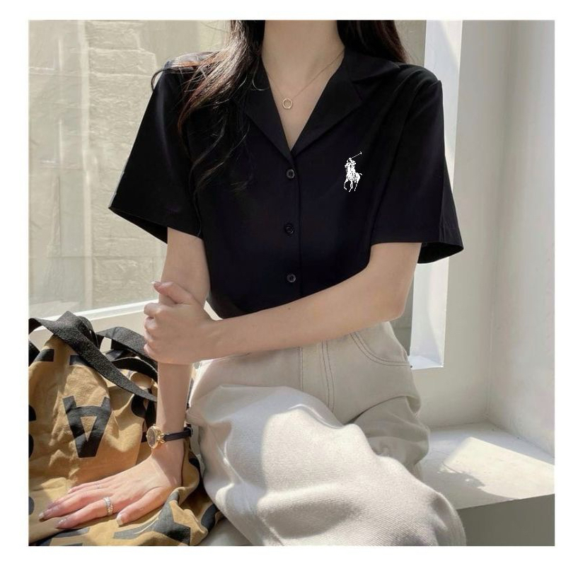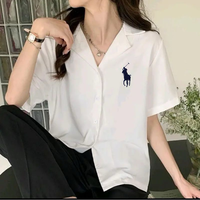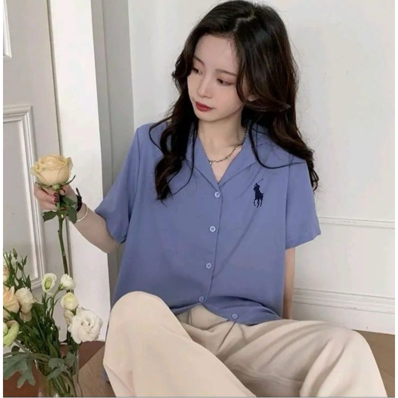 Kemeja Polos Logo Samping Lengan Pendek / Kemeja Kasual Wanita / Kemeja Kerja