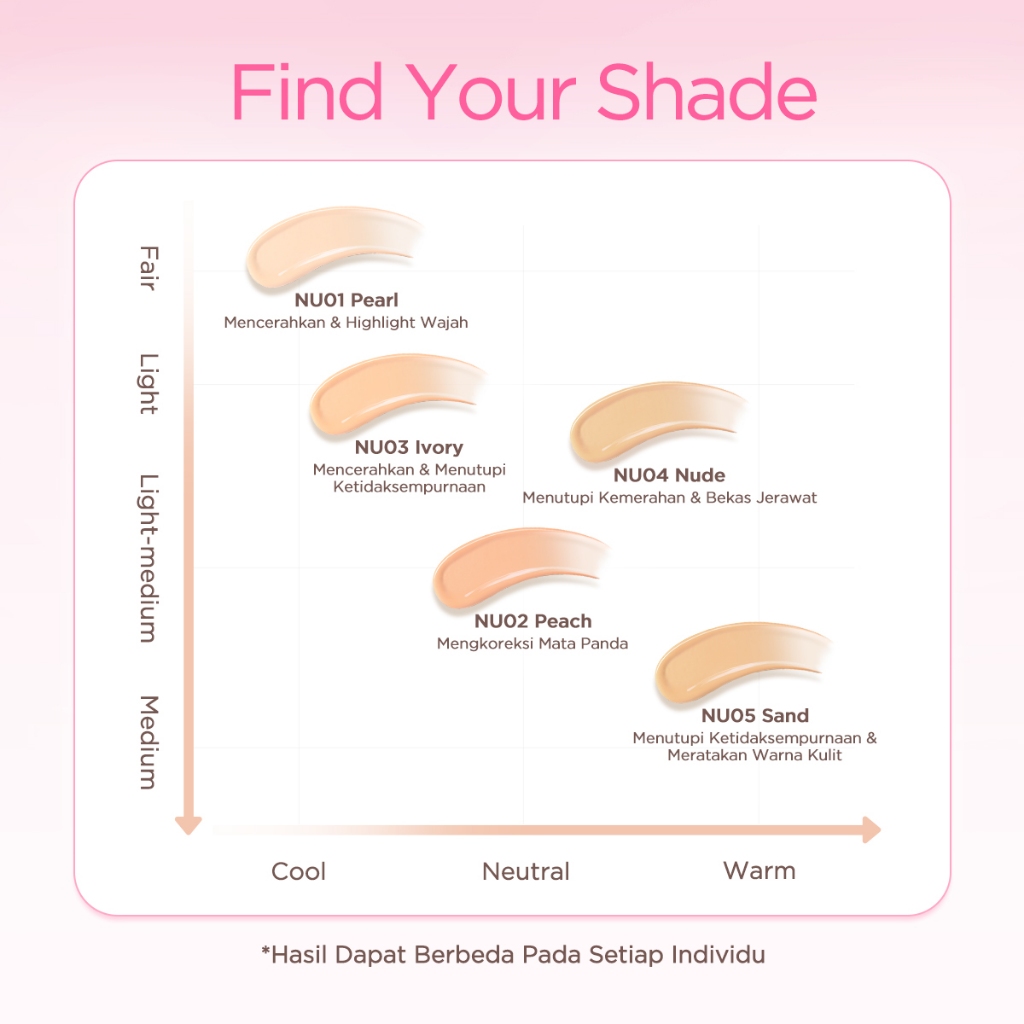 NU01 Pearl , NU02 Peach , NU03 Ivory, NU04 Nude , NU05 Sand