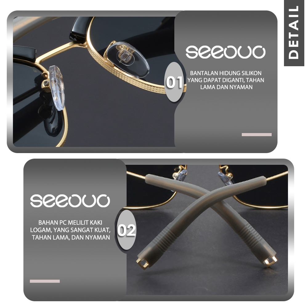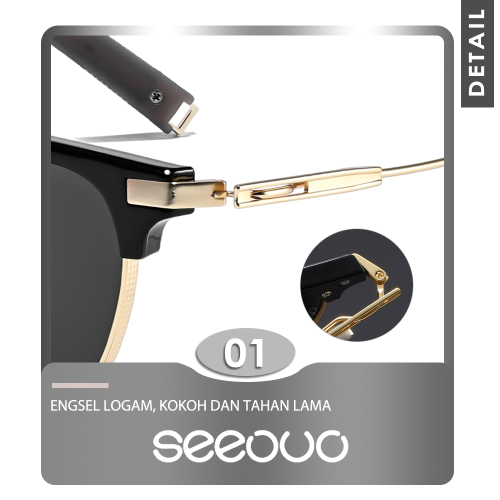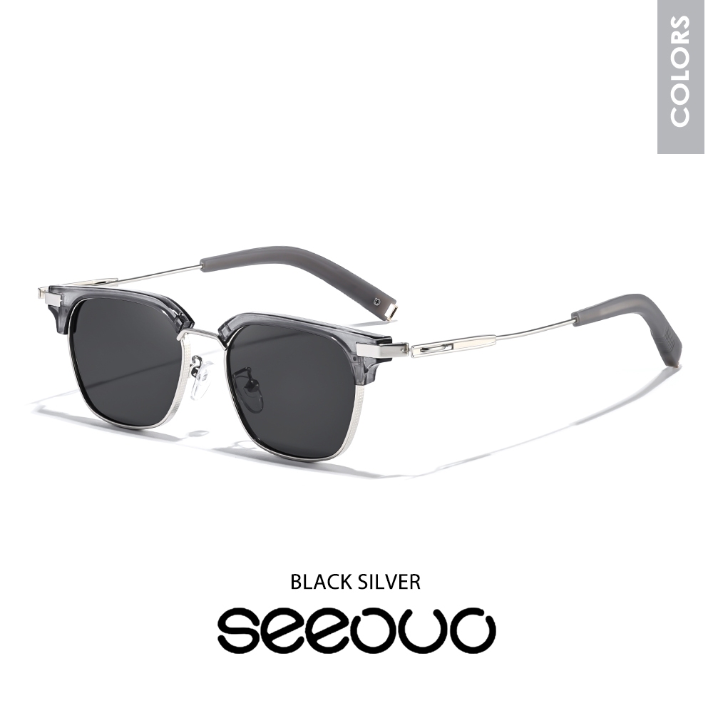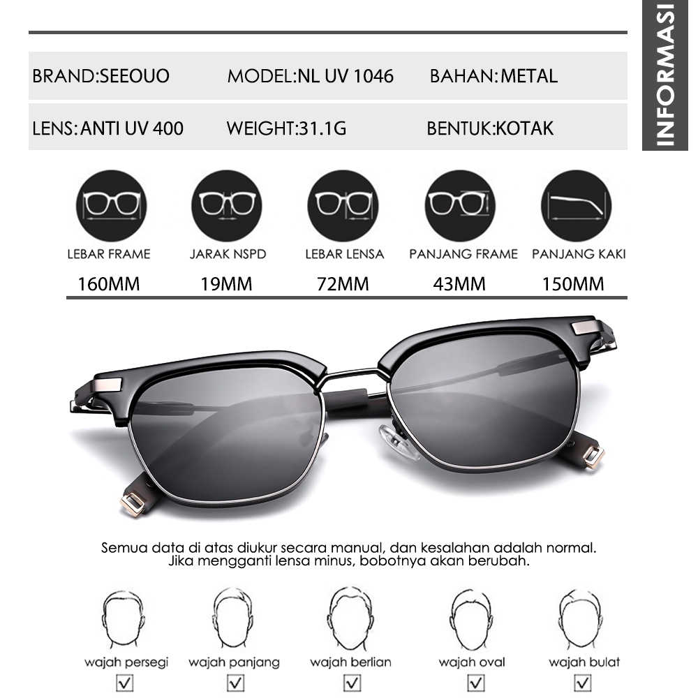 Seeouo Sunglasses Kacamata Anti UV 400 TR90+Metal Kotak Stylish Vintage Pria Kekinian Ringan Browline 1046