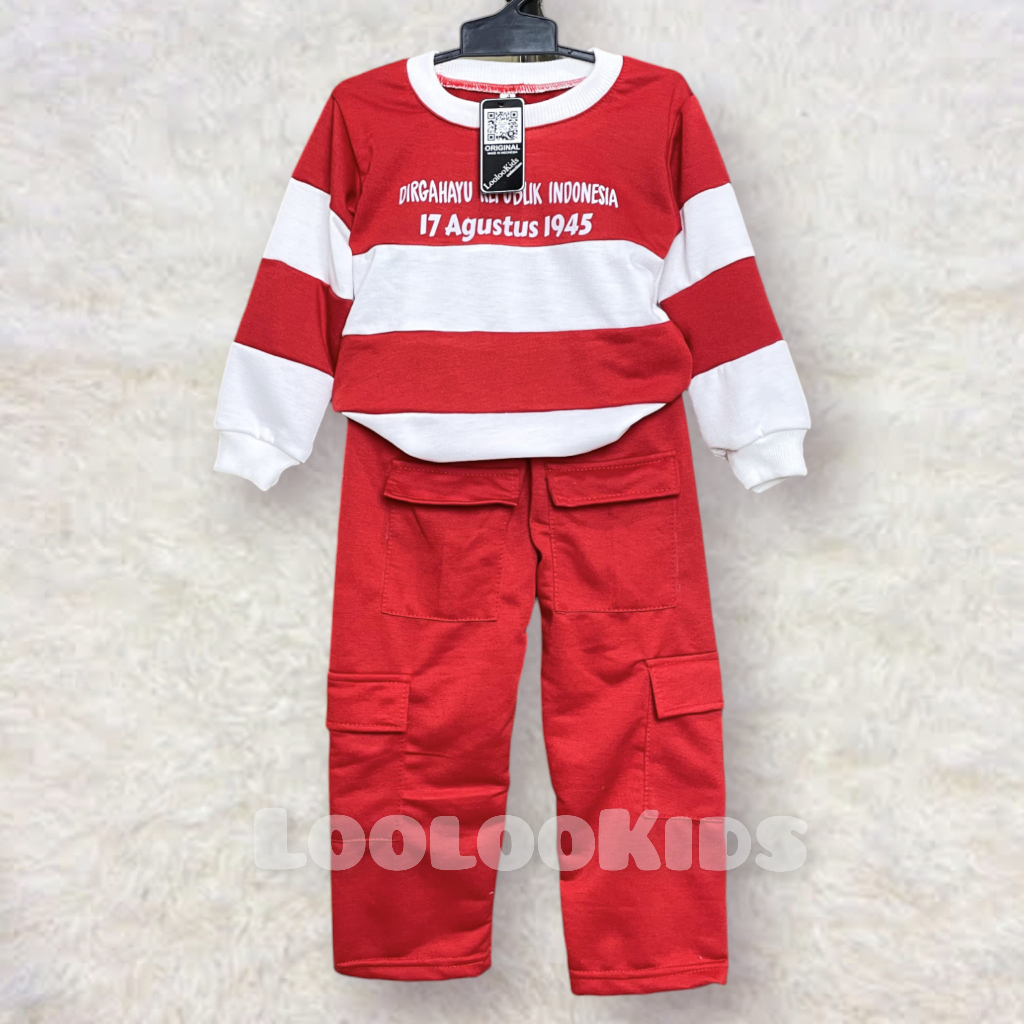 Baju Kaos Anak Setelan Kemerdekaan 17 Agustus Anak Viral Garis Garis Lucu Setelan Baju Dan Celana Kargo Merah Putih