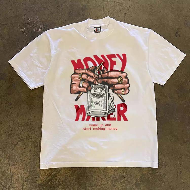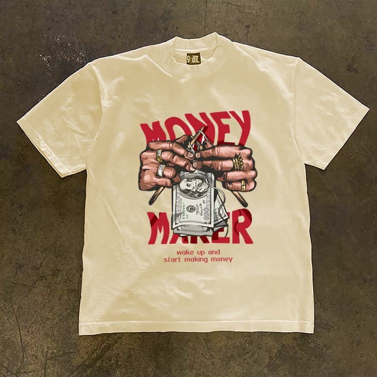 baju skena JJ.STORE Pola cetak uang kertas retro Amerika Lengan pendek baju atasan wanita terbaru kekinian kaos pria ove