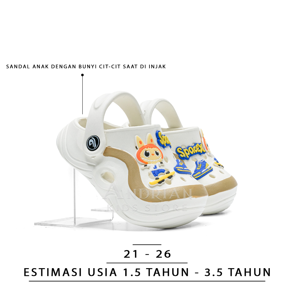 New Dulux - Sandal Anak Perempuan dan laki-laki dengan el sandal bunyi cit-cit berkarakter spacex labubu1-3 tahun