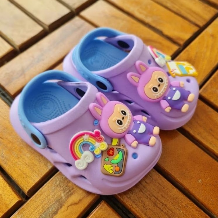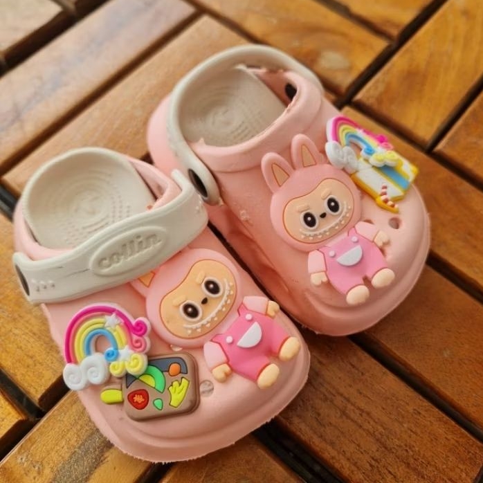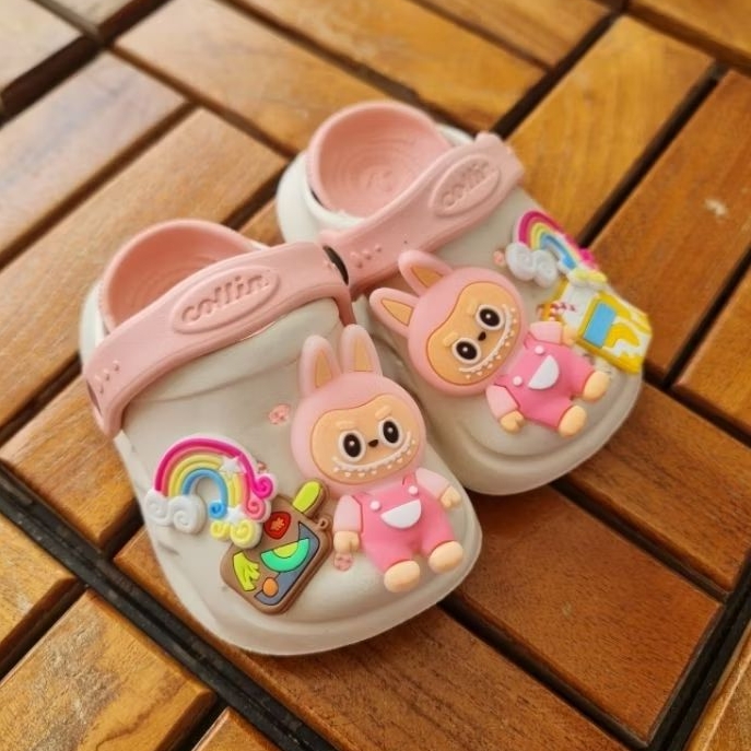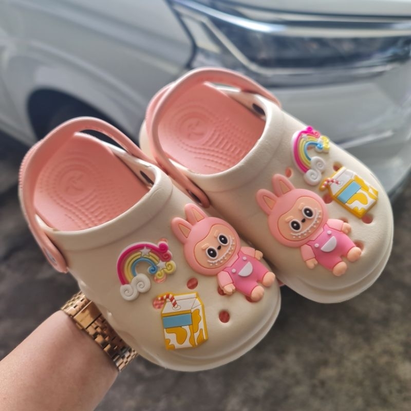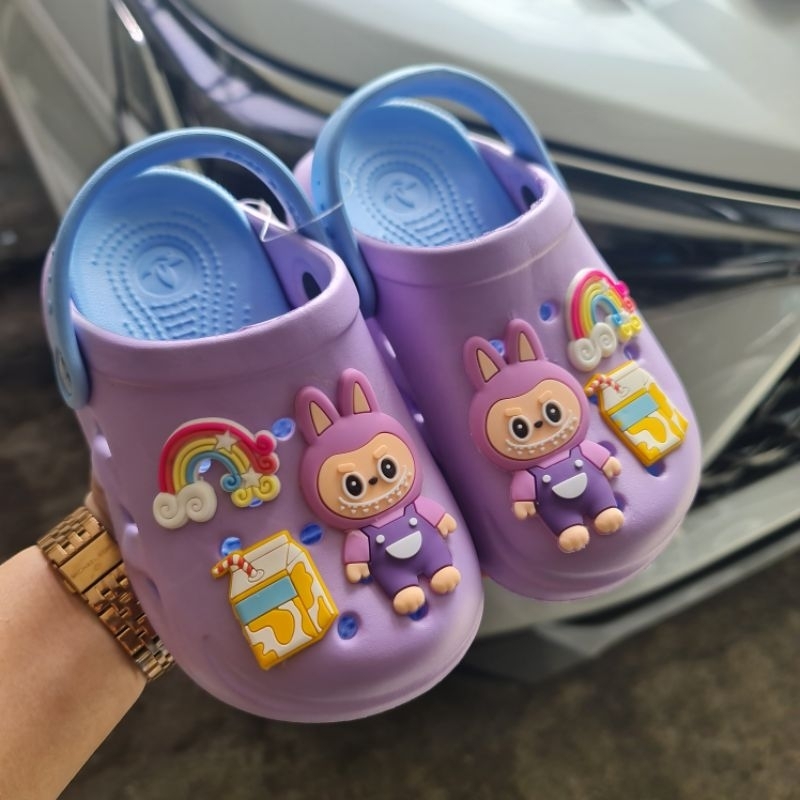 PROMO 8.8 Sandal Anak Baim Karakter Labubu Sandal Kodok Jibbitz Anak Perempuan Terbaru - 6305-1