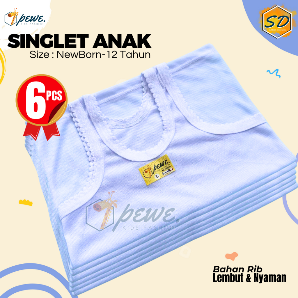 6 PCS kaos dalam Anak Laki Laki Warna Putih Usia 0 -12 Tahun Tanpa Bolong Bolong - Kaos kutang Anak Laki Dan Perempuan T