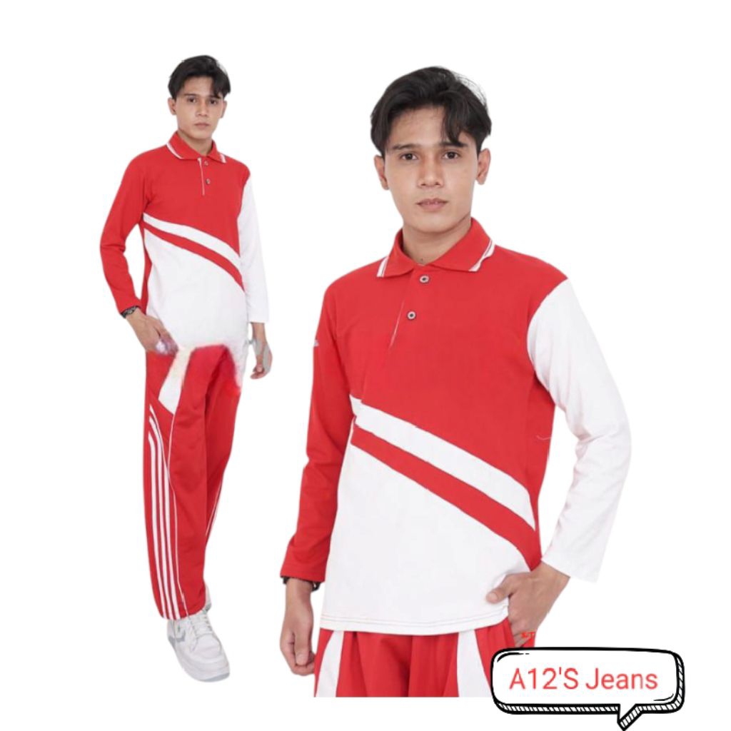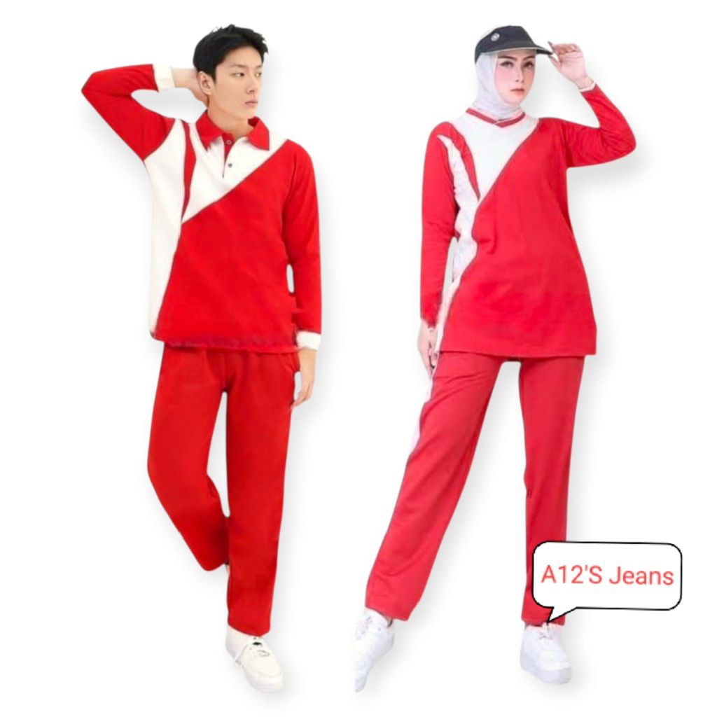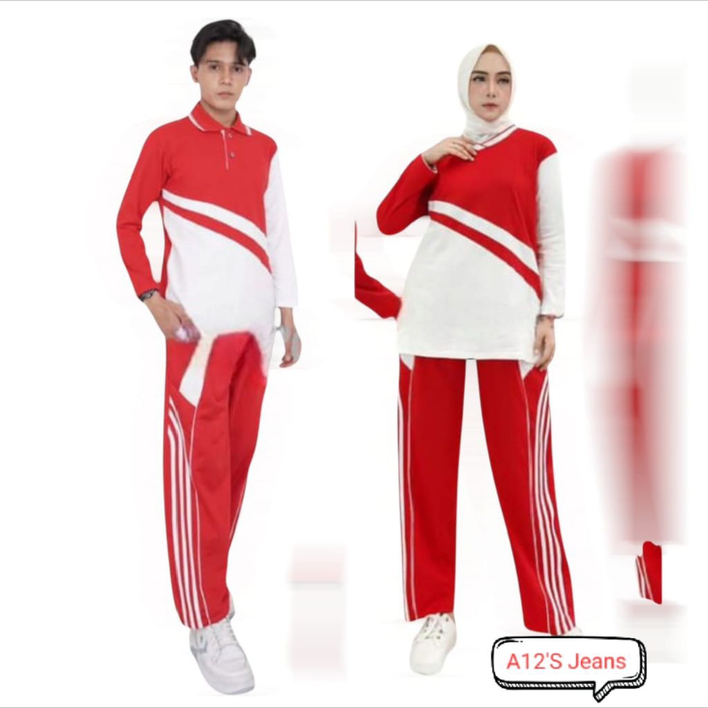 Setelan Baju Olahraga Merah Putih Setelan Baju Senam Merah Putih untuk Pria dan Wanita
