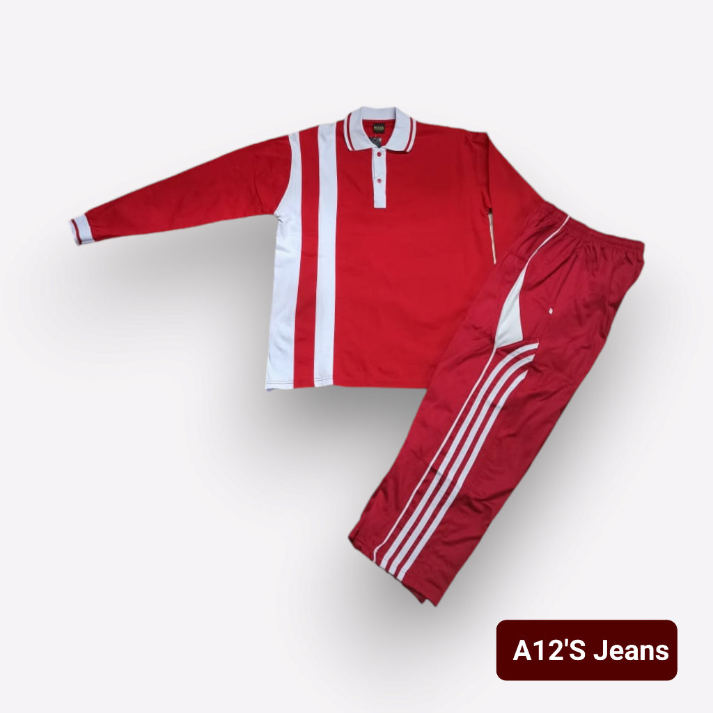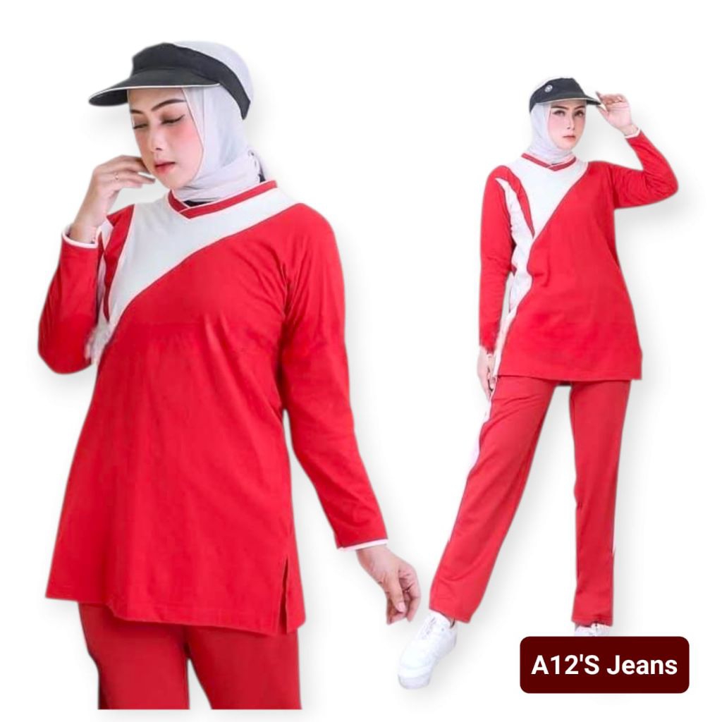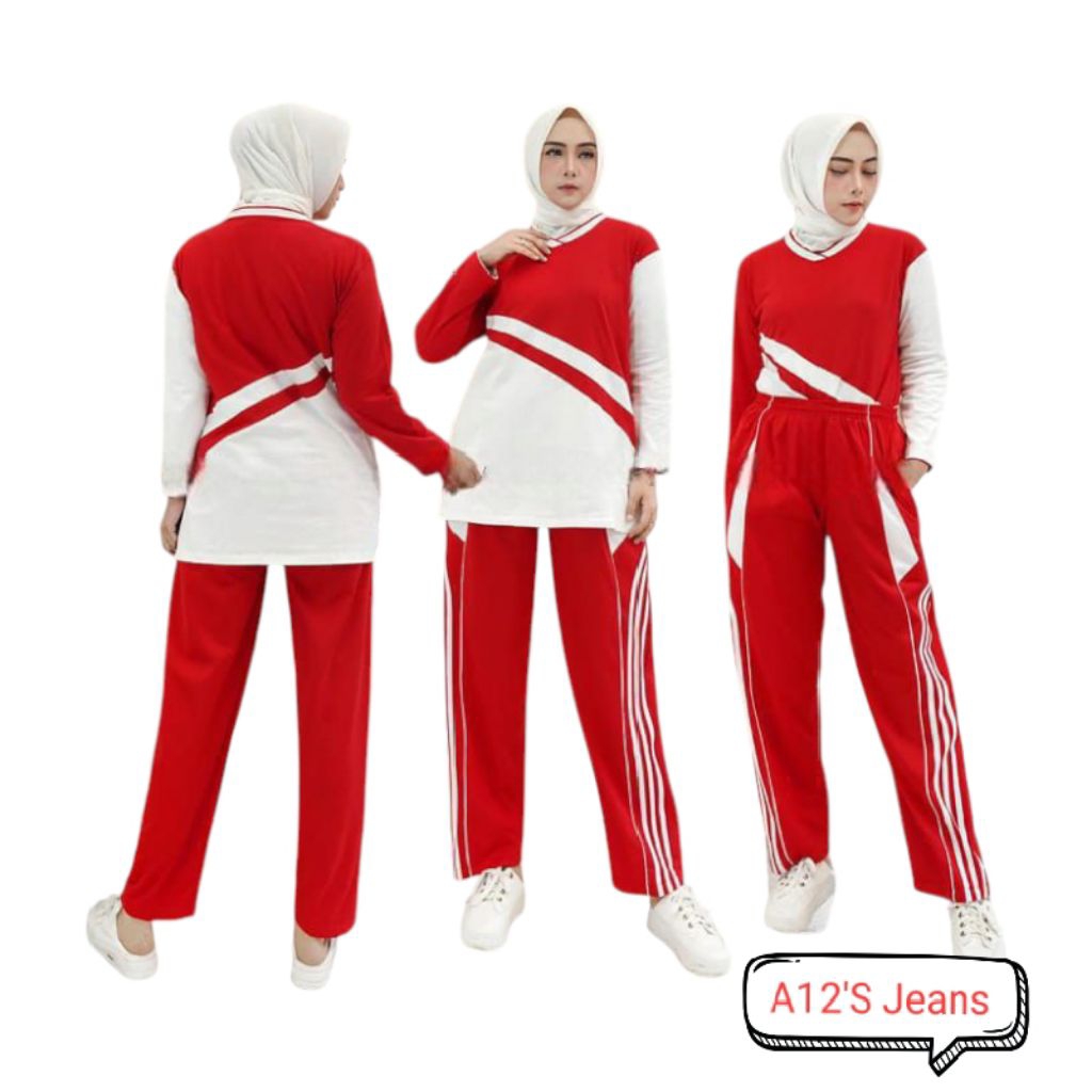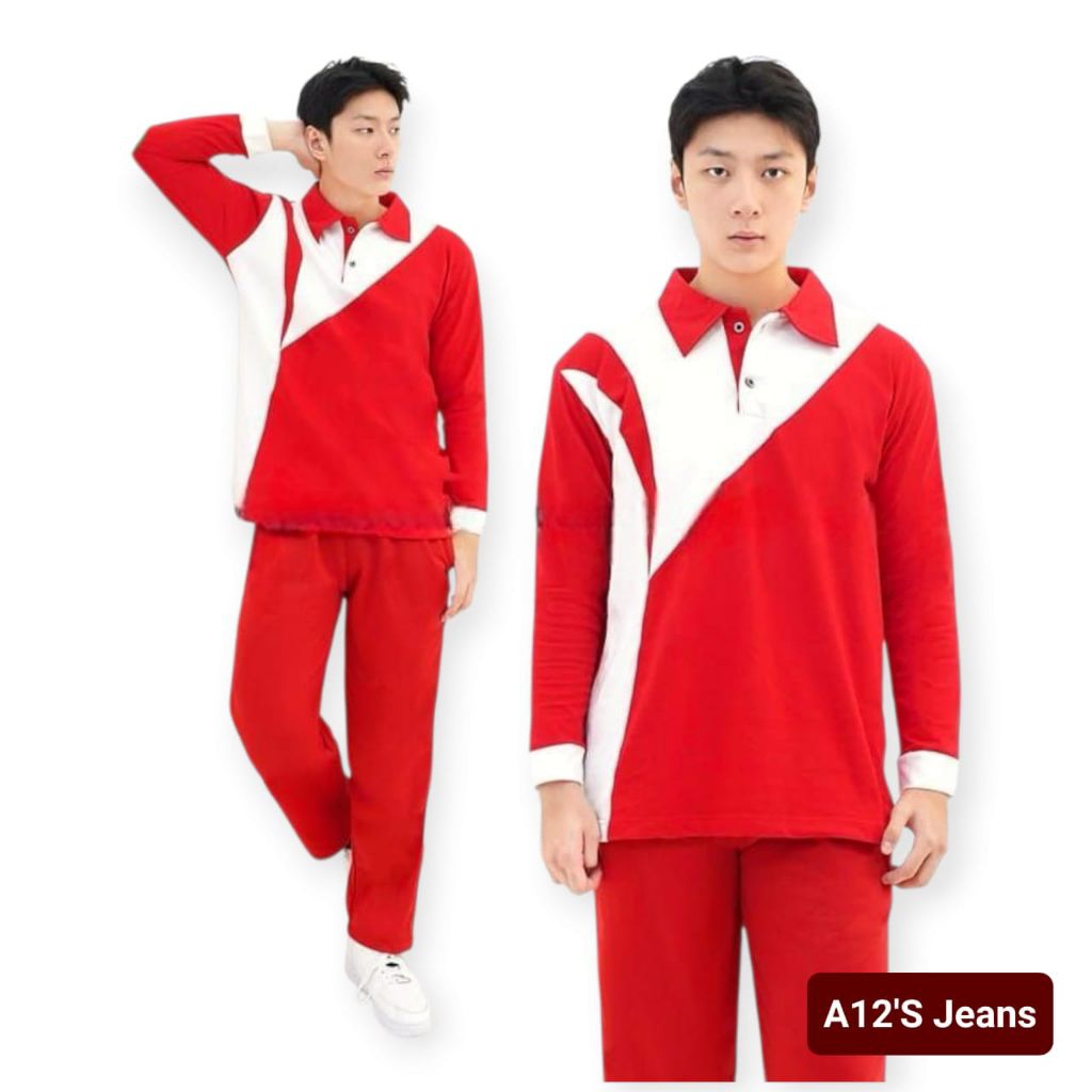 Setelan Baju Olahraga Merah Putih Setelan Baju Senam Merah Putih untuk Pria dan Wanita