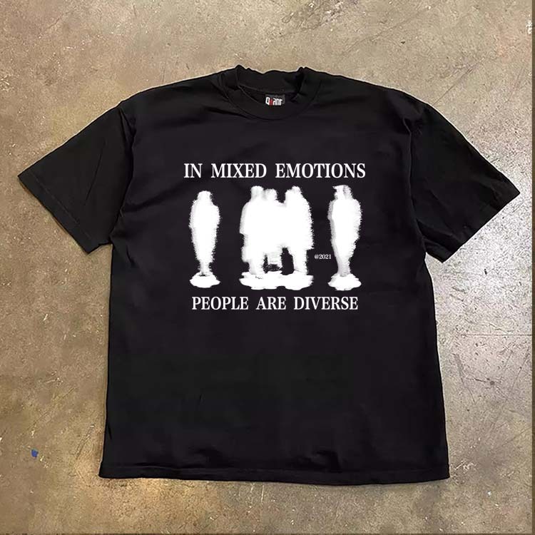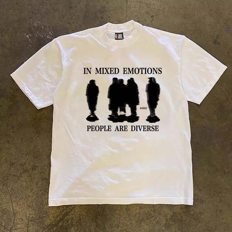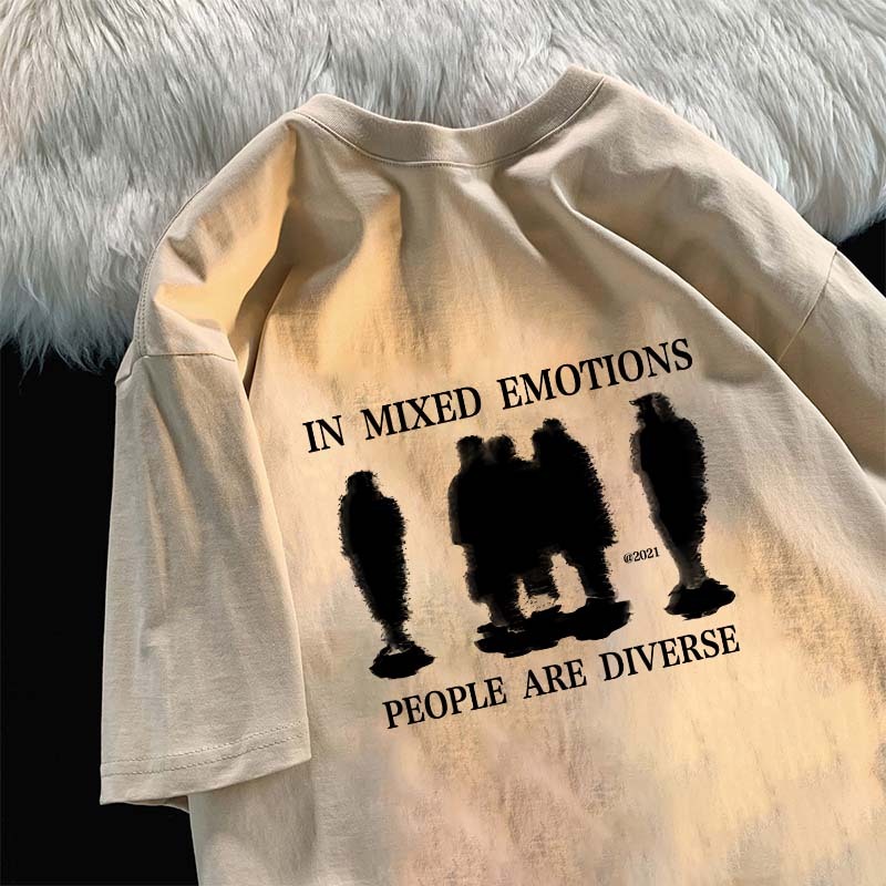 baju skena JJ.STORE Pencetakan pola huruf siluet manusia unik gaya Korea Lengan pendek baju atasan wanita terbaru kekin