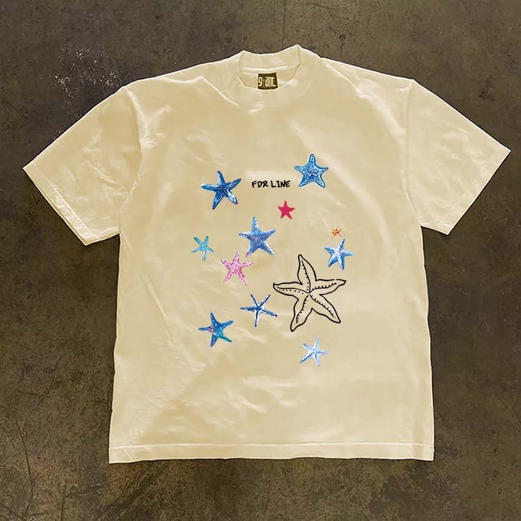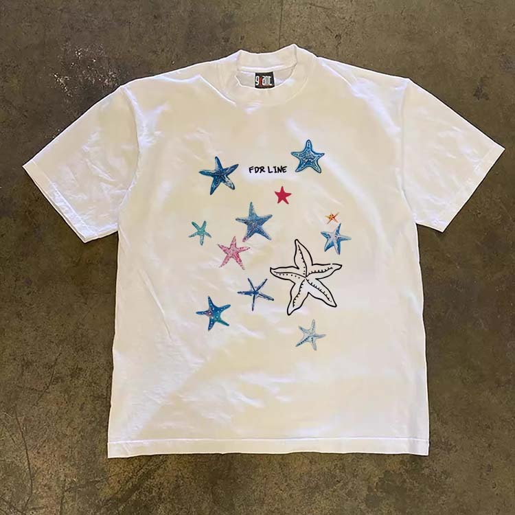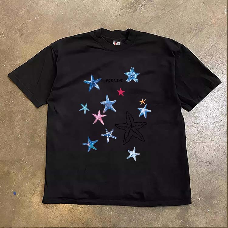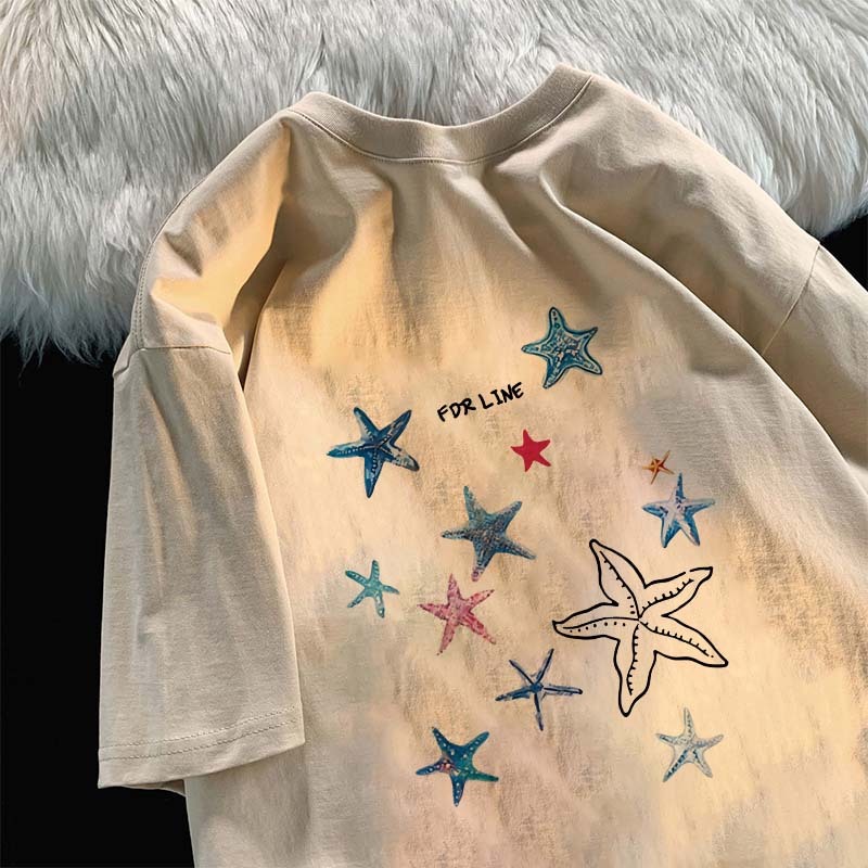 baju skena JJ.STORE Pola cetak bintang laut serbaguna kepribadian niche gaya Korea Lengan pendek baju atasan wanita terb