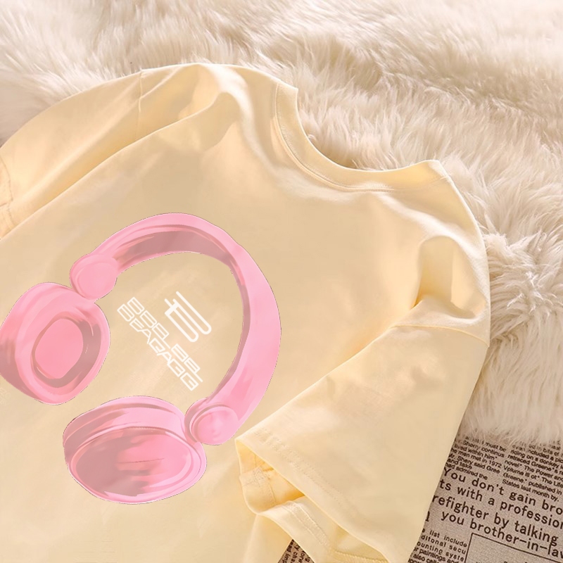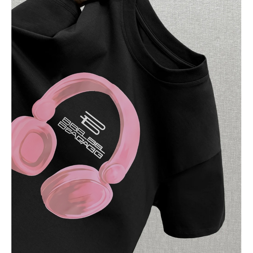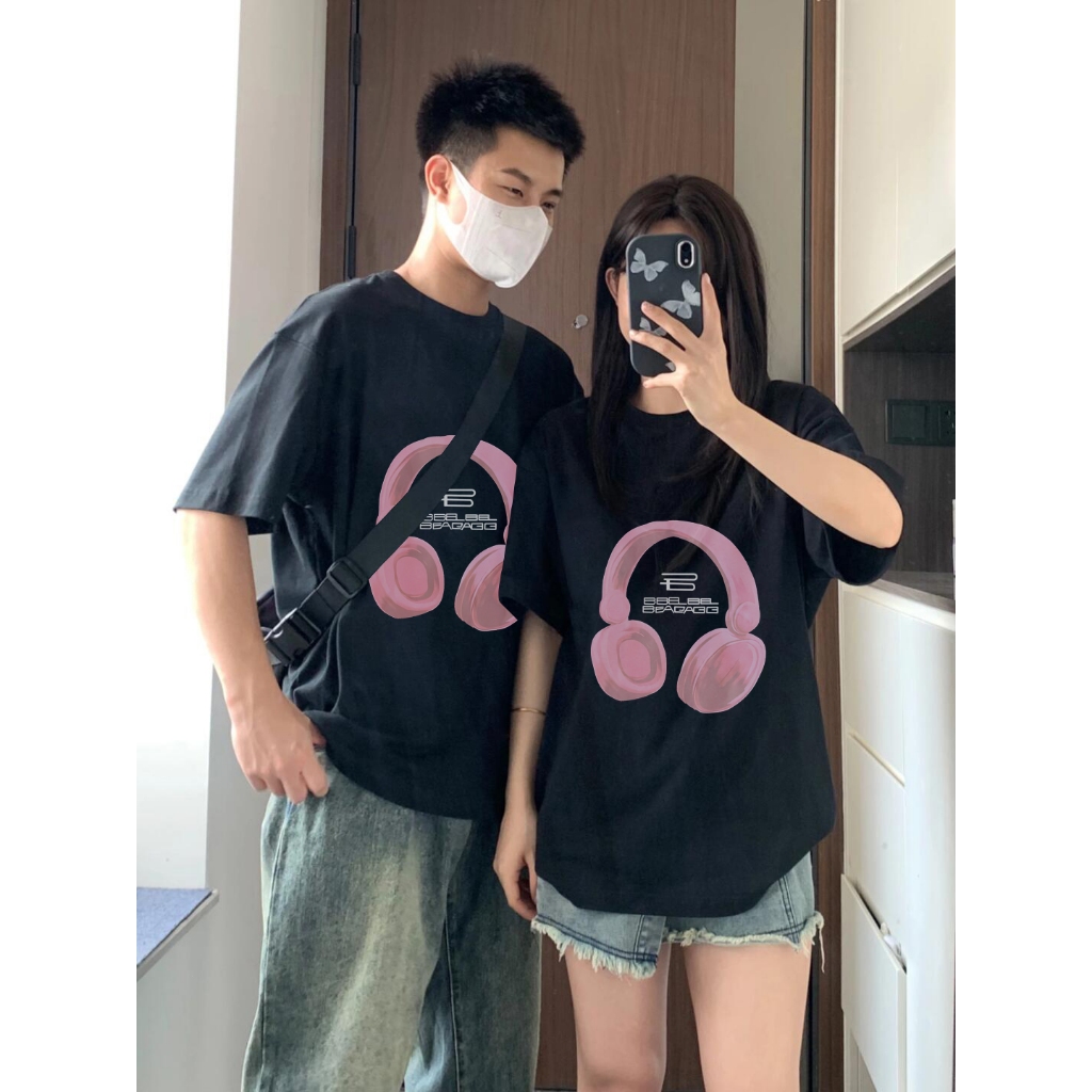 baju skena 【】Promo!! Baju Couple T-shirt Oversize Headphone Merah Muda print| Kaos Wanita Hatim | Kaos pria dan wanita/