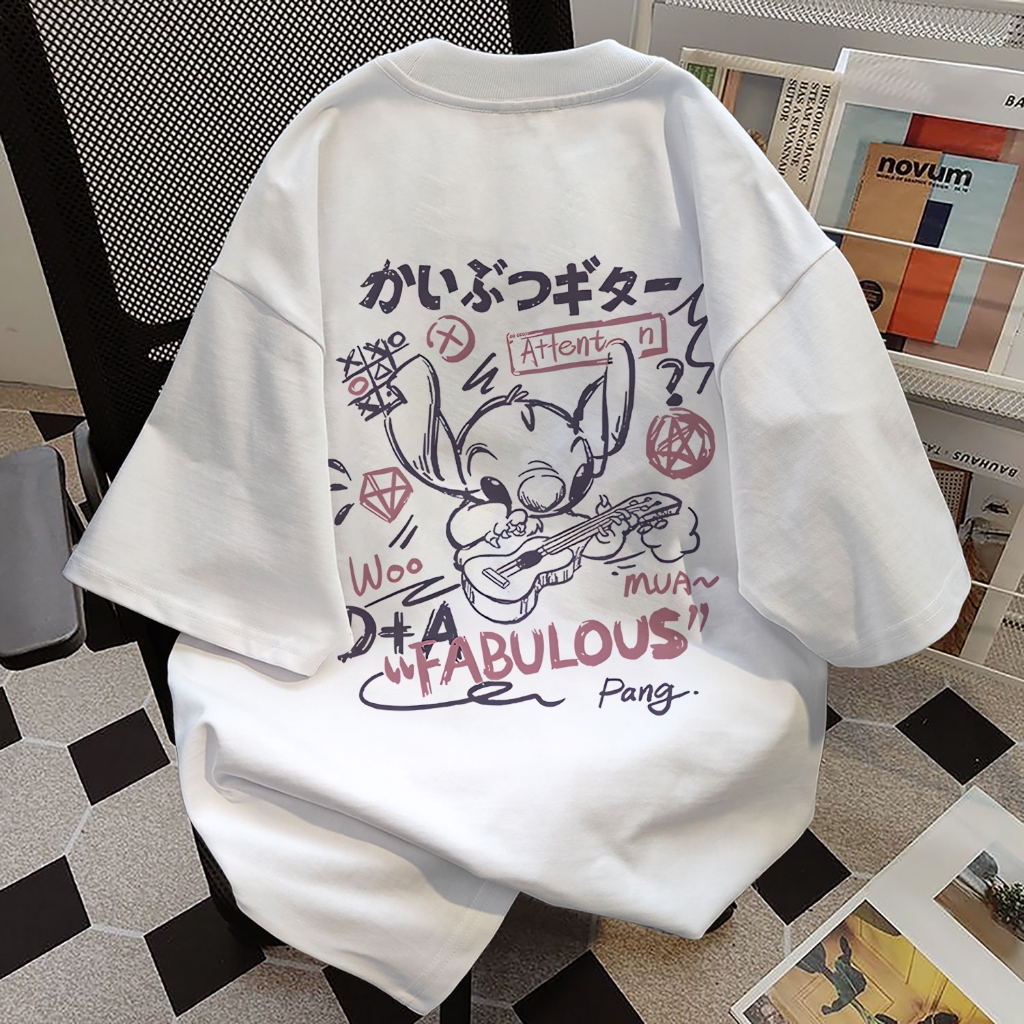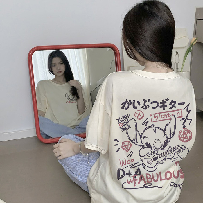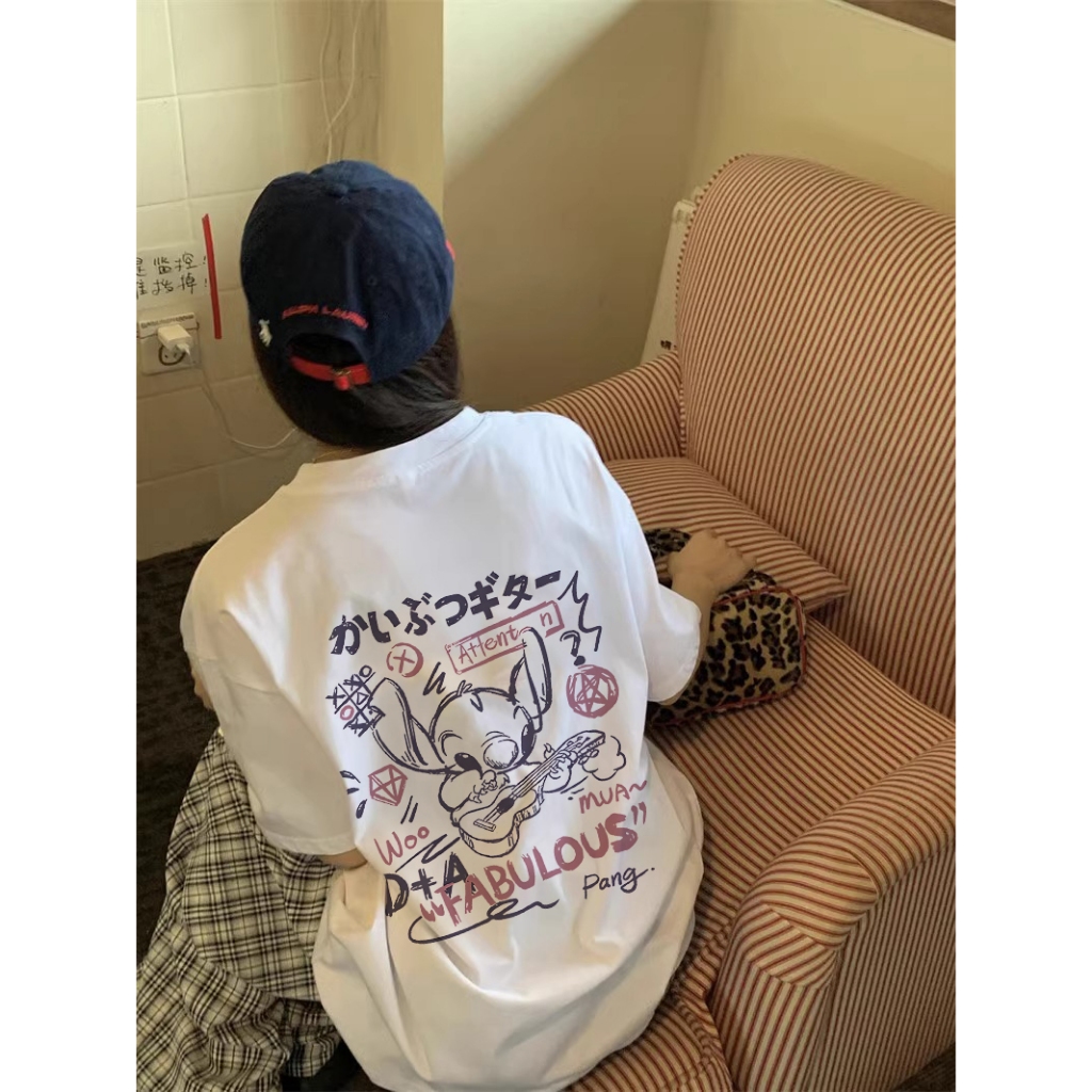 baju skena 【】Kaos Oversize Stitch t shirt kaos oversize wanita baju bigsize lengan pendek retro Vintage kaos/262