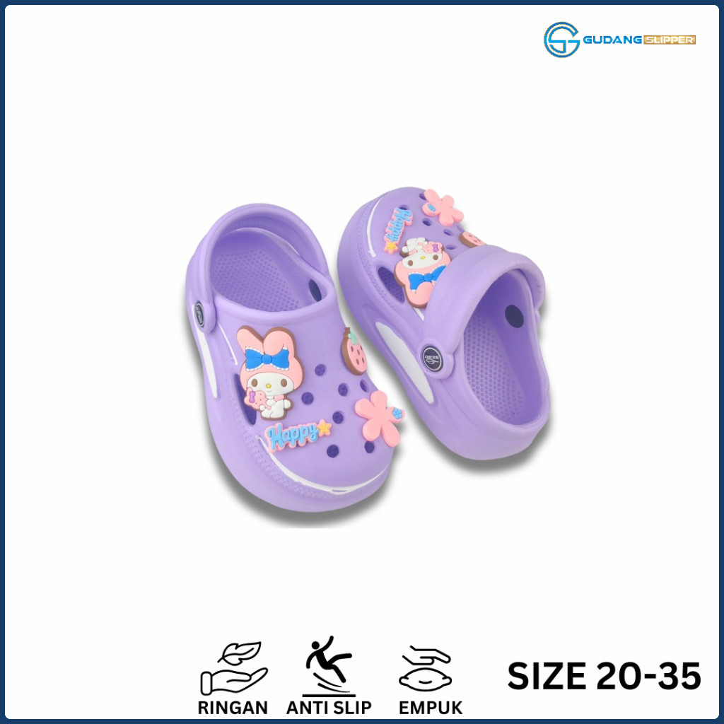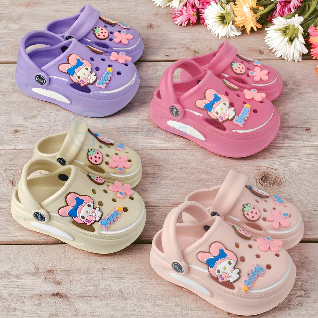 GS Sandal Baim Premium Anak Perempuan Cewek Viral Sendal Kodok Bayi Korean Jibbitz Melody Kelinci Size 20-35