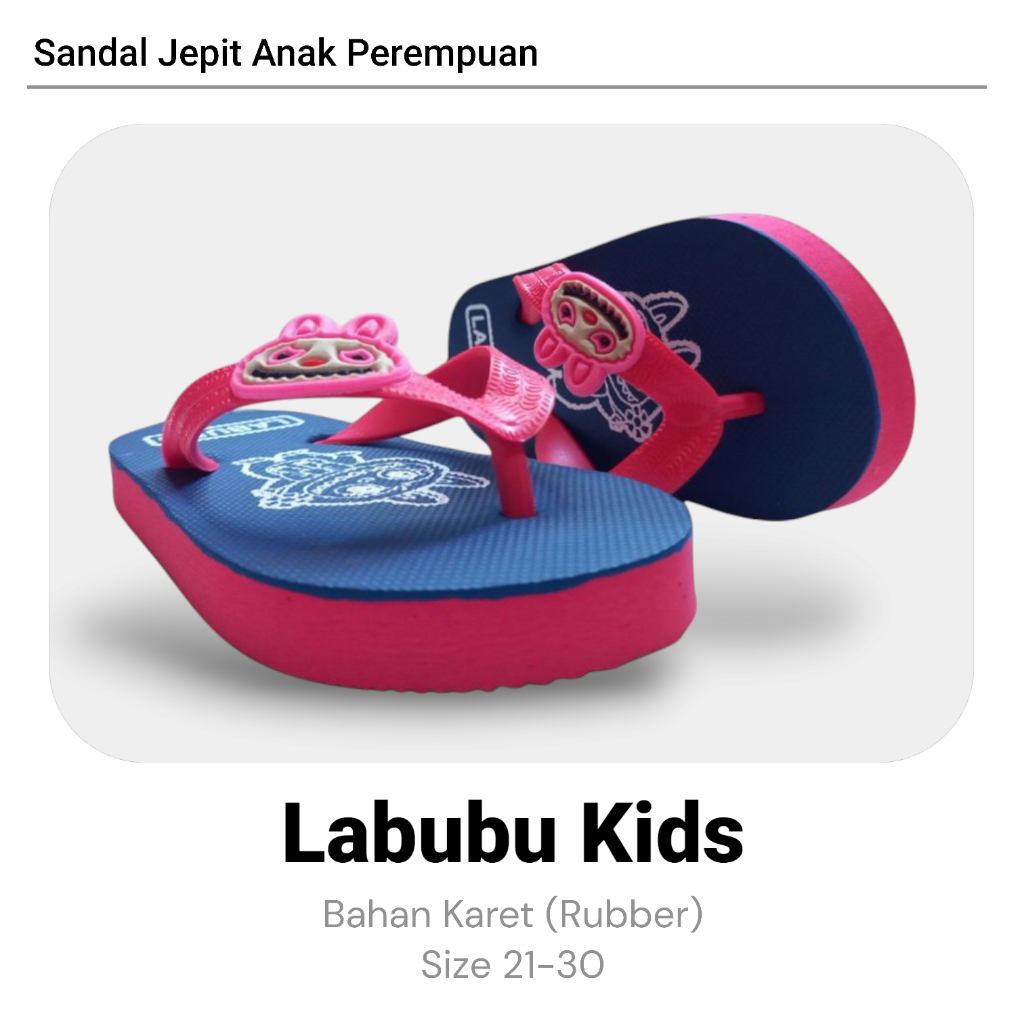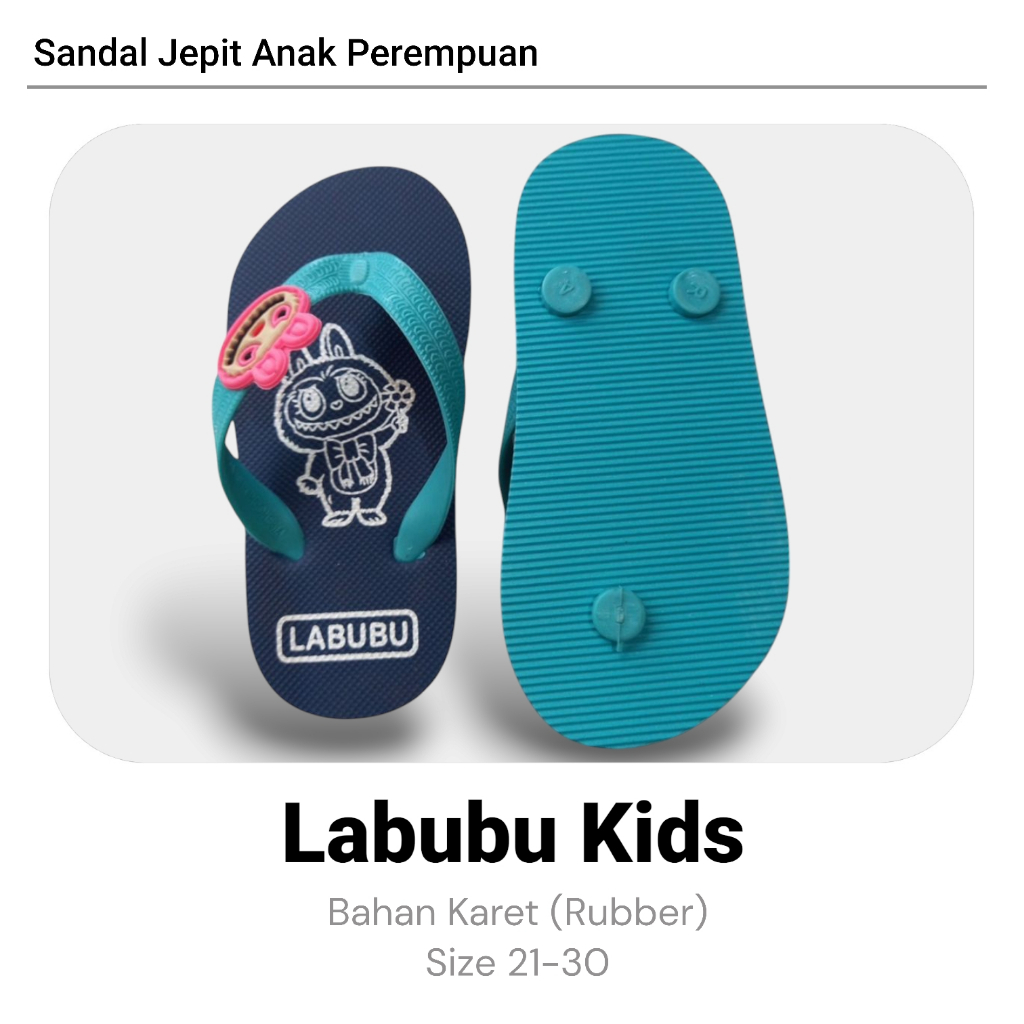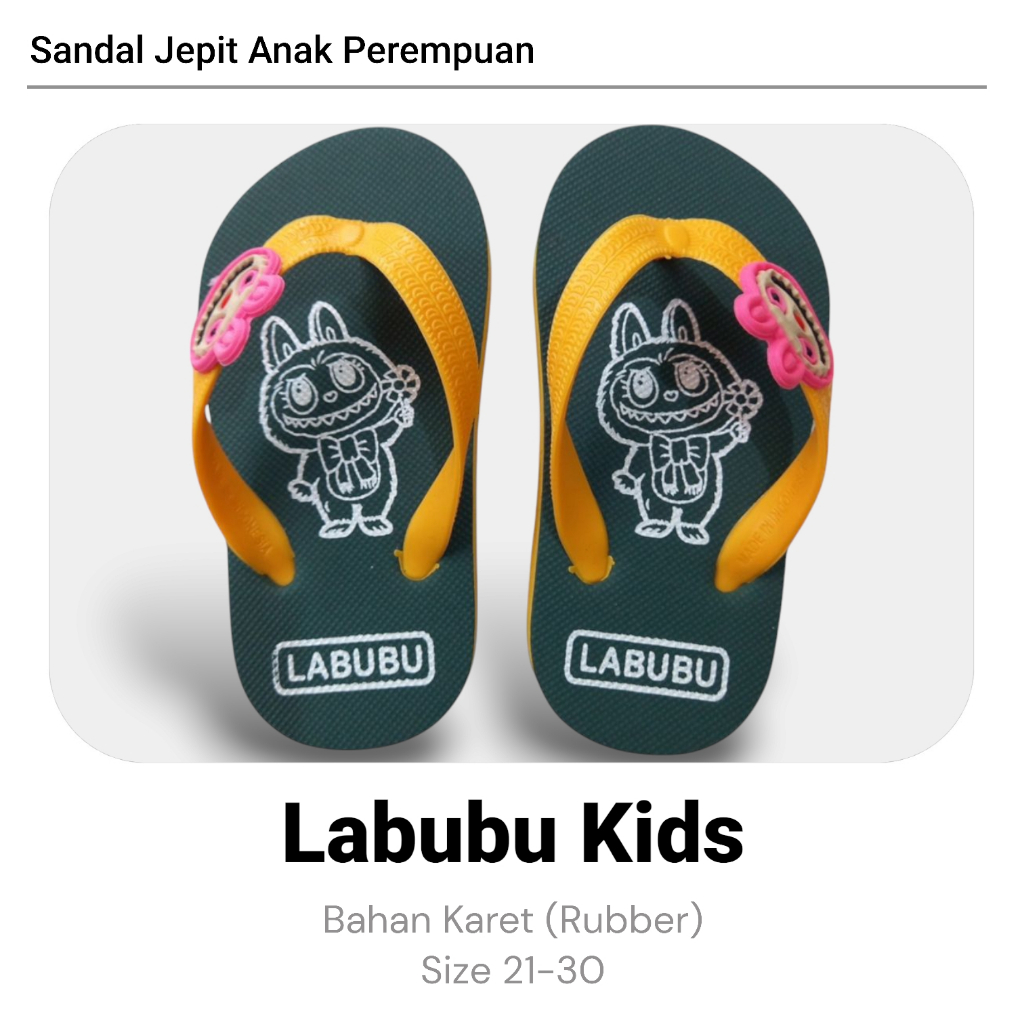 Sandal Jepit Anak-Anak Perempuan Cute Labubu Usia 1 2 3 4 5 6 7 8 Tahun Bahan Karet Empuk Anti Slip
