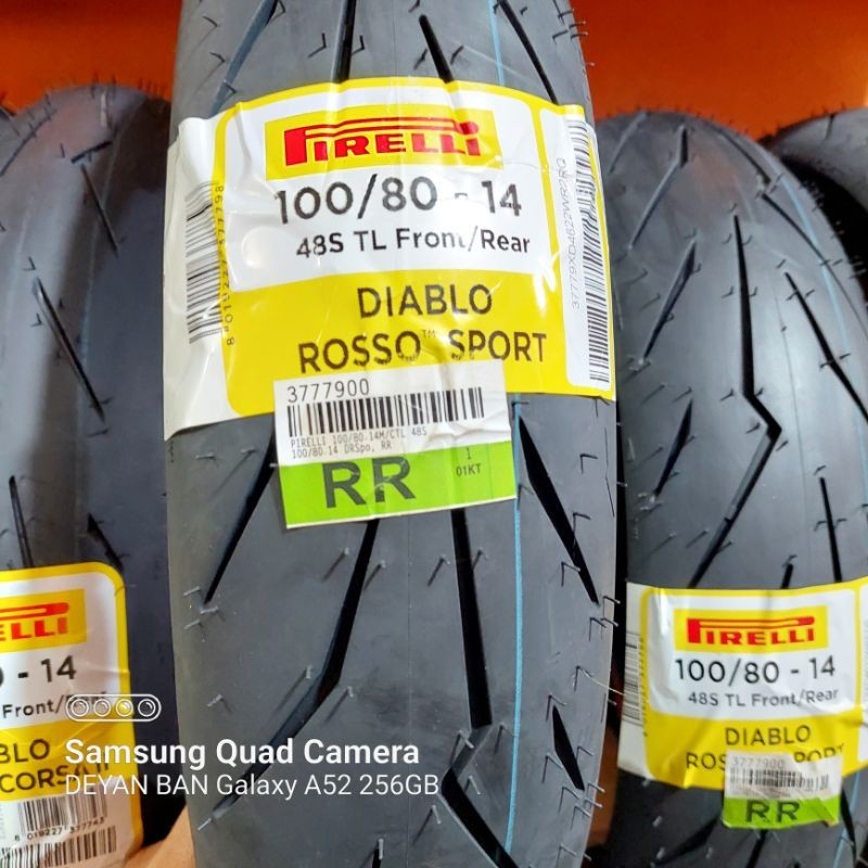 Ban motor PIRELLI DIABLO ROSSO SPORT 100/80 - 14 Tublles Dual Compound Metik 1pcs
