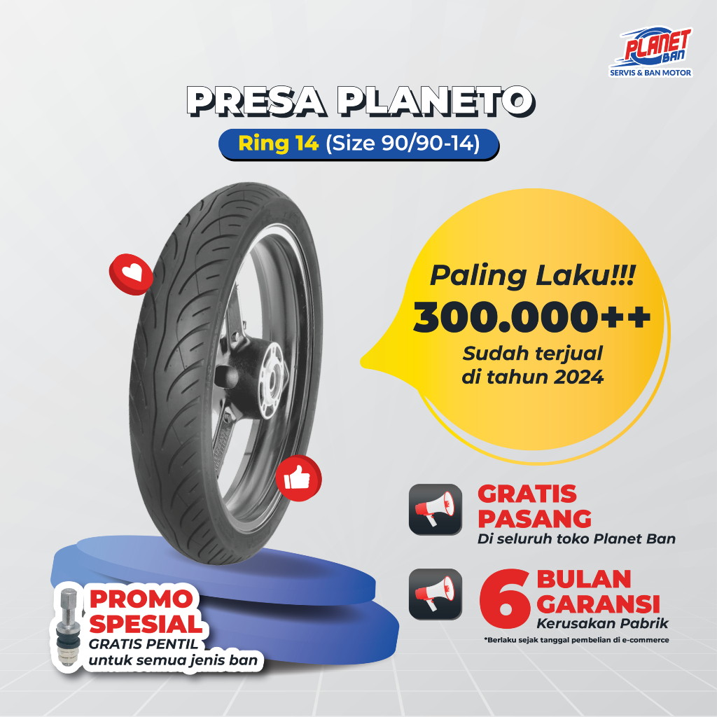 Ban Motor Ring 14 - 90/90 Presa Planeto TUBELESS (Ban Motor Lexi 125, Lexi 155, Beat, Scoopy (Old), Genio, Vario 125, Vario 110)