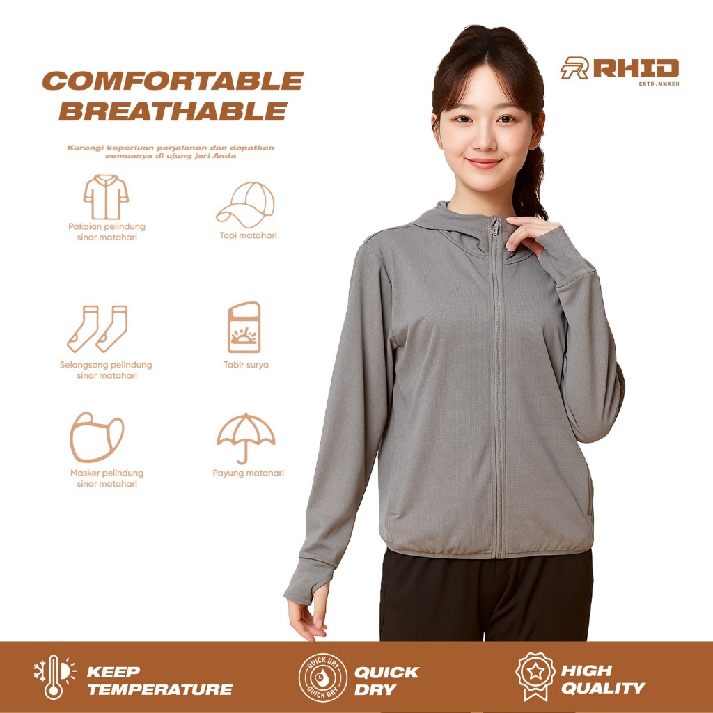 RHID - Jaket Wanita Olahraga Hoodie Outdoor Sun Protection Anti UV Joging