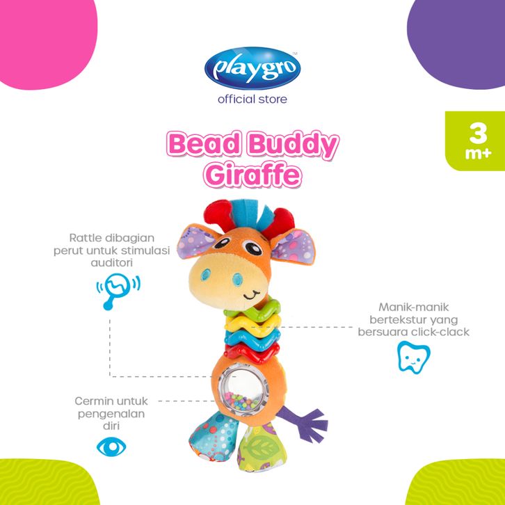 Playro Bead Buddy Giraffe - Mainan Gigit Anak Bayi Balita