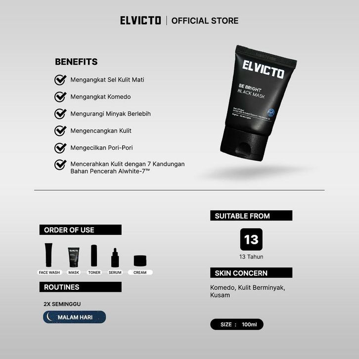 masker wajah SKINCARE PRIA MASKER WAJAH PRIA BE BRIGHT BLACK MASK ELVICTO 100 ORIGINAL UNTUK WAJAH BERJERAWAT