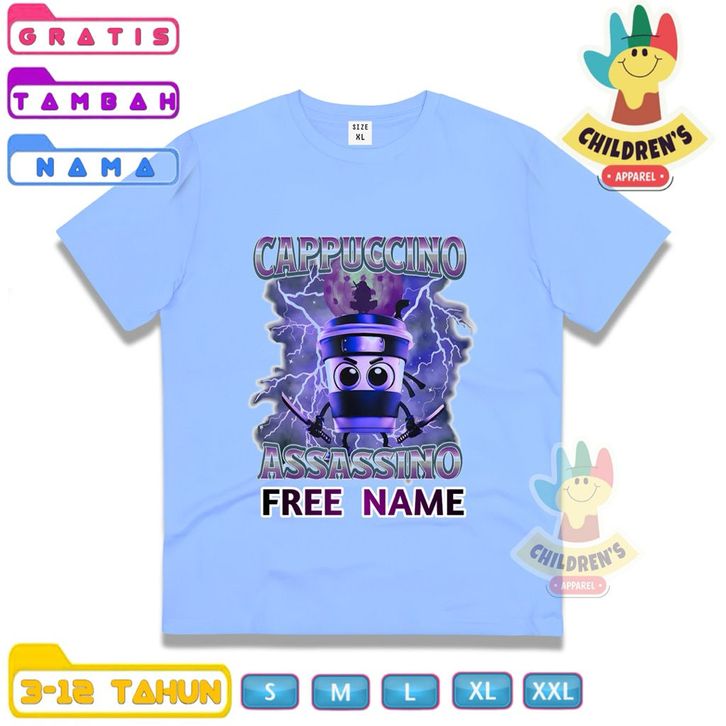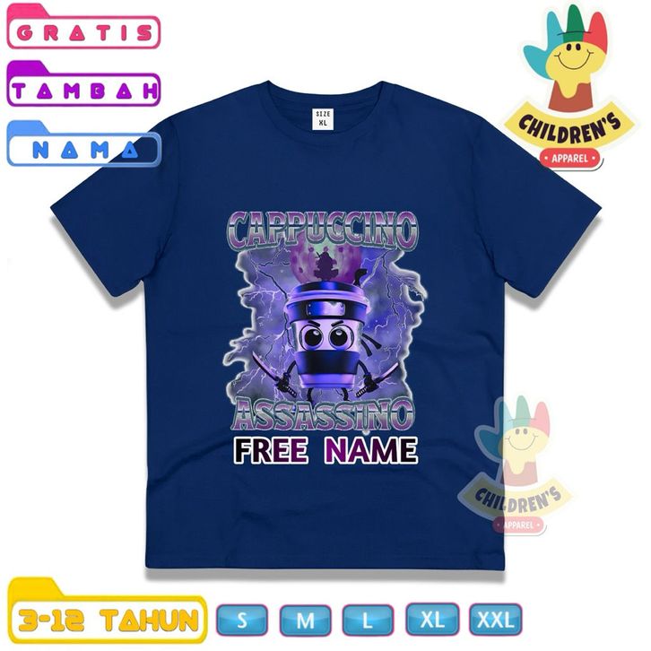 Kaos Anak Capuccino Assasino Anomali / Baju Anak Anomali Brainrot Free Nama