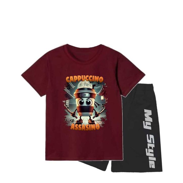 Stelan Baju Kaos Motif Anomali Cappucino Assasino 01 Oblong Lengan Pendek Atasan Laki Laki Perempuan Anak Usia 1-12