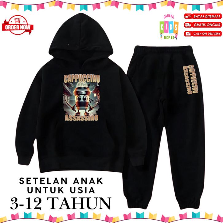 Setelan Baju Hoodie Anak Assassino Cappuccino Anomali Usia 3-12 Tahun