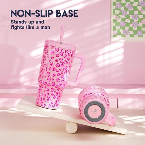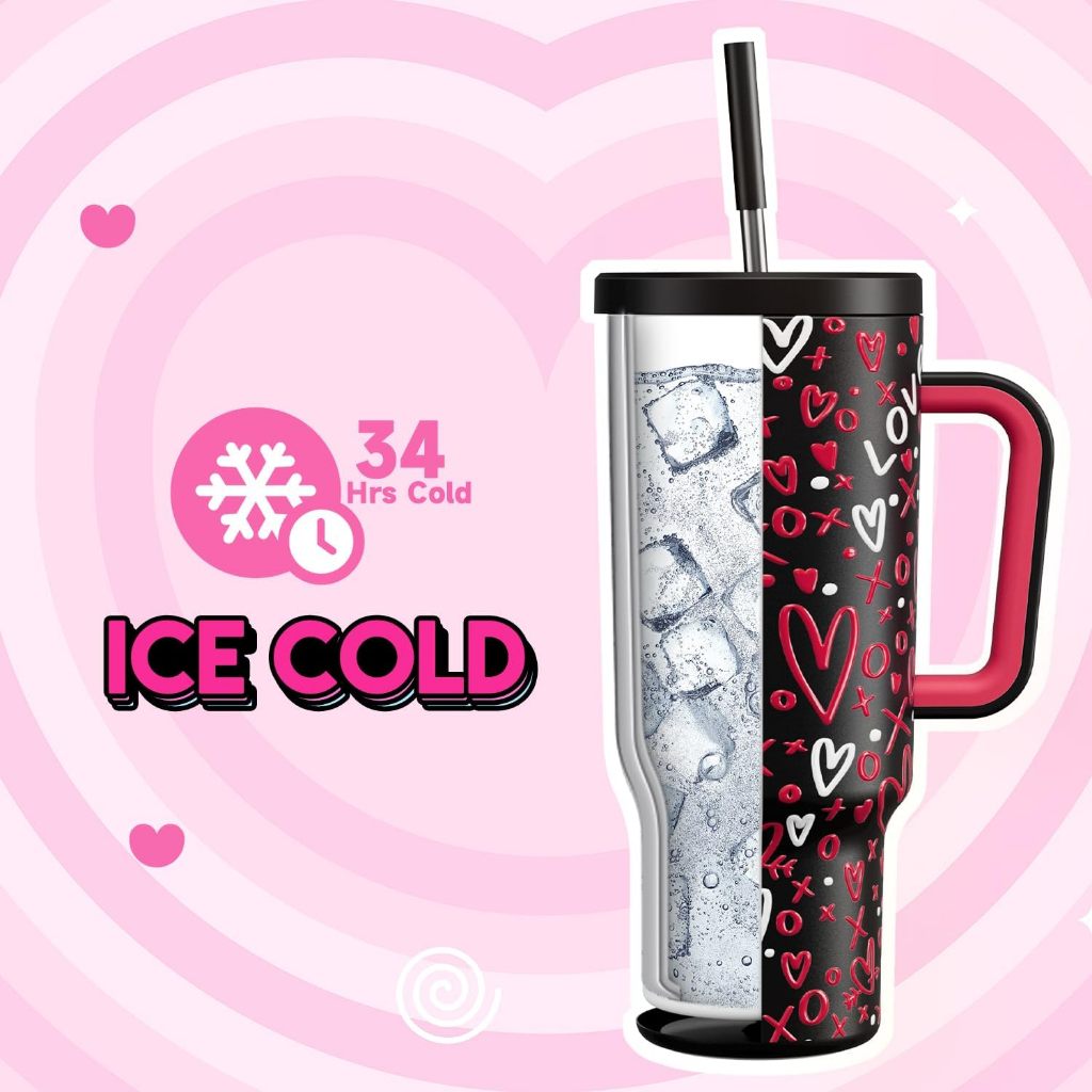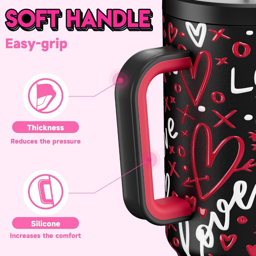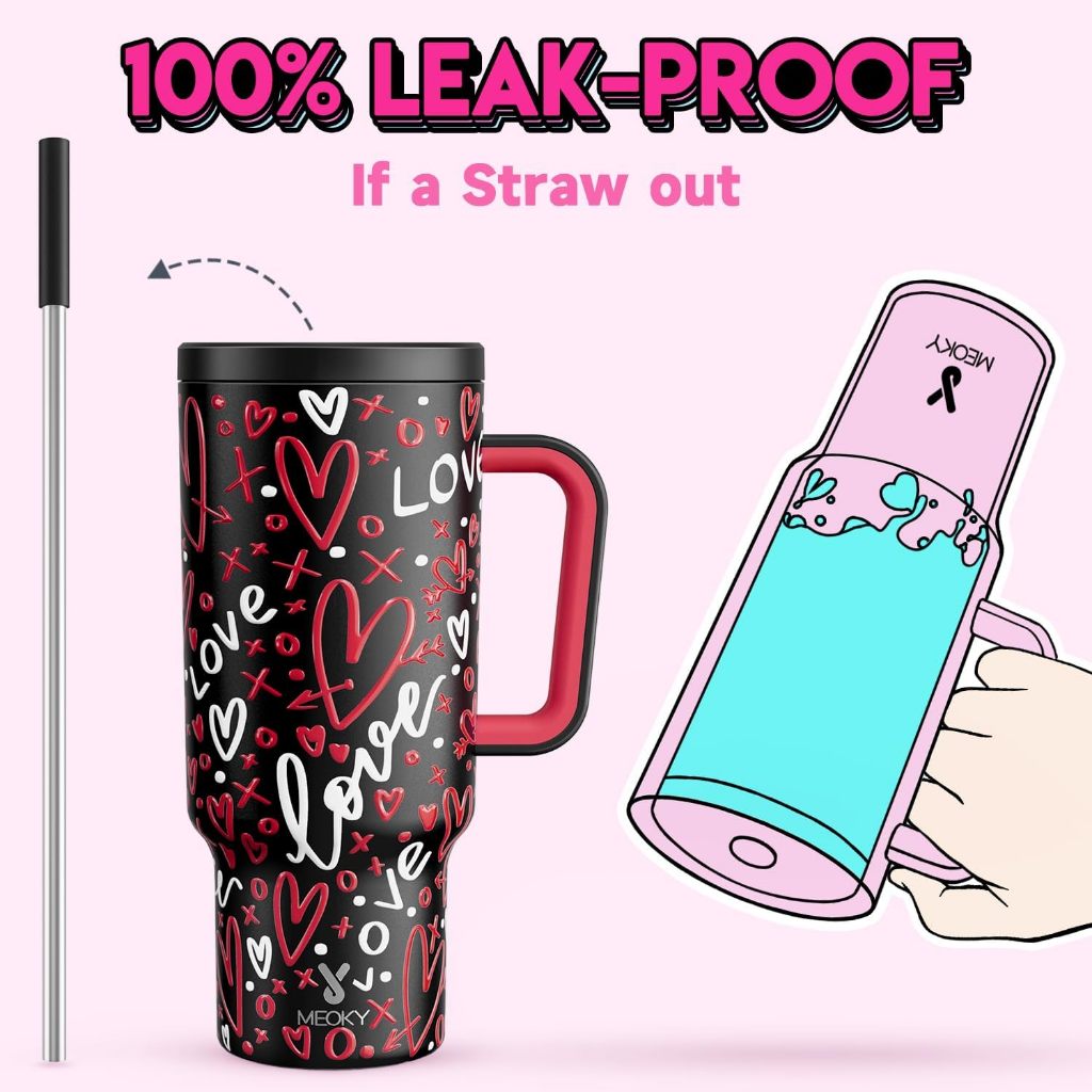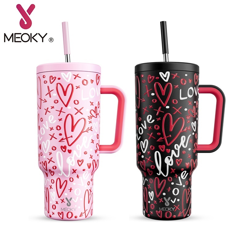 MEOKY Tumbler dengan Pegangan untuk Pasangan Pola Cinta Cangkir Air Pasangan Cangkir Termos Kapasitas Besar 40oz Stainle
