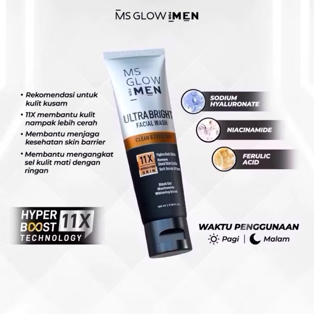 MS GLOW FOR MEN FACIAL WASH (ENERGIZER/ACNOTION/HYDRA/BRIGHTENING) SABUN PERAWATAN WAJAH JERAWAT PEMUTIH WAJAH PRIA TERM
