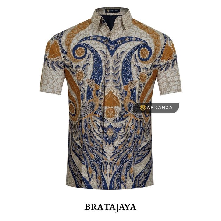 BATIK ARKANZA Motif BRATAJAYA Hem Atasan Kemeja Baju Batik Pria Cowok Laki Laki Slimfit Full Lapis Furing Lengan Panjang