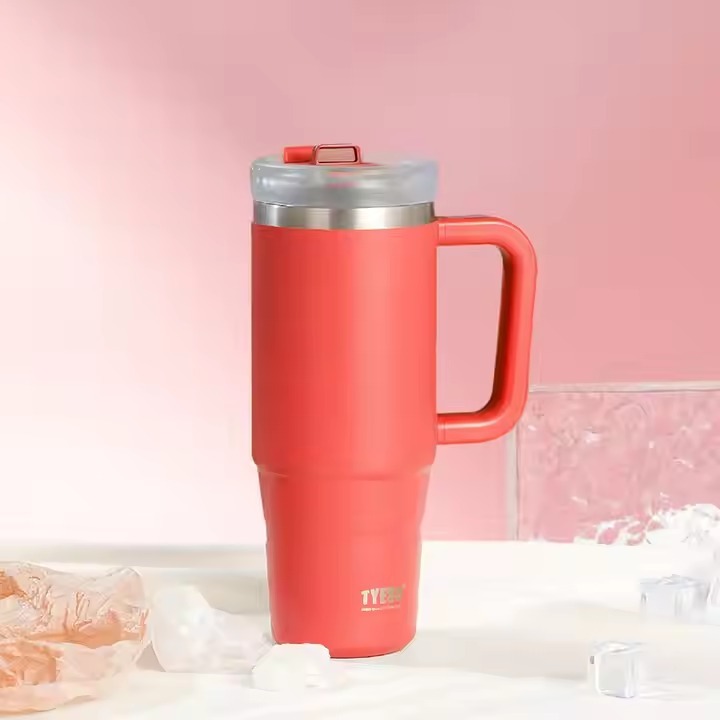 Tumbler Handle Stainless Dengan Gagang Premium Dua Posisi Penutup dengan Sedotan