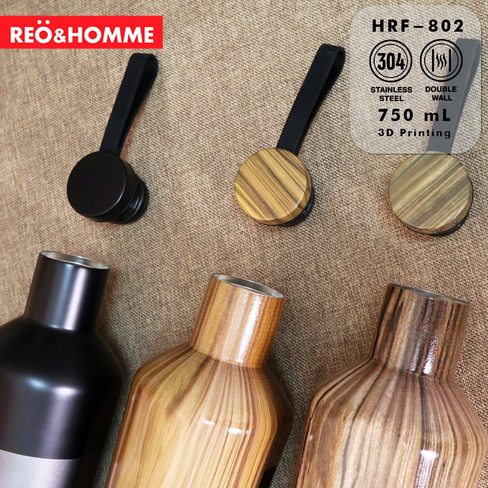 Reo&Homme Botol Minum Pure Stainless SUS 304 750 ML Insulated Tumbler Leakproof Design 3D Printing Motif Kayu HRF-802